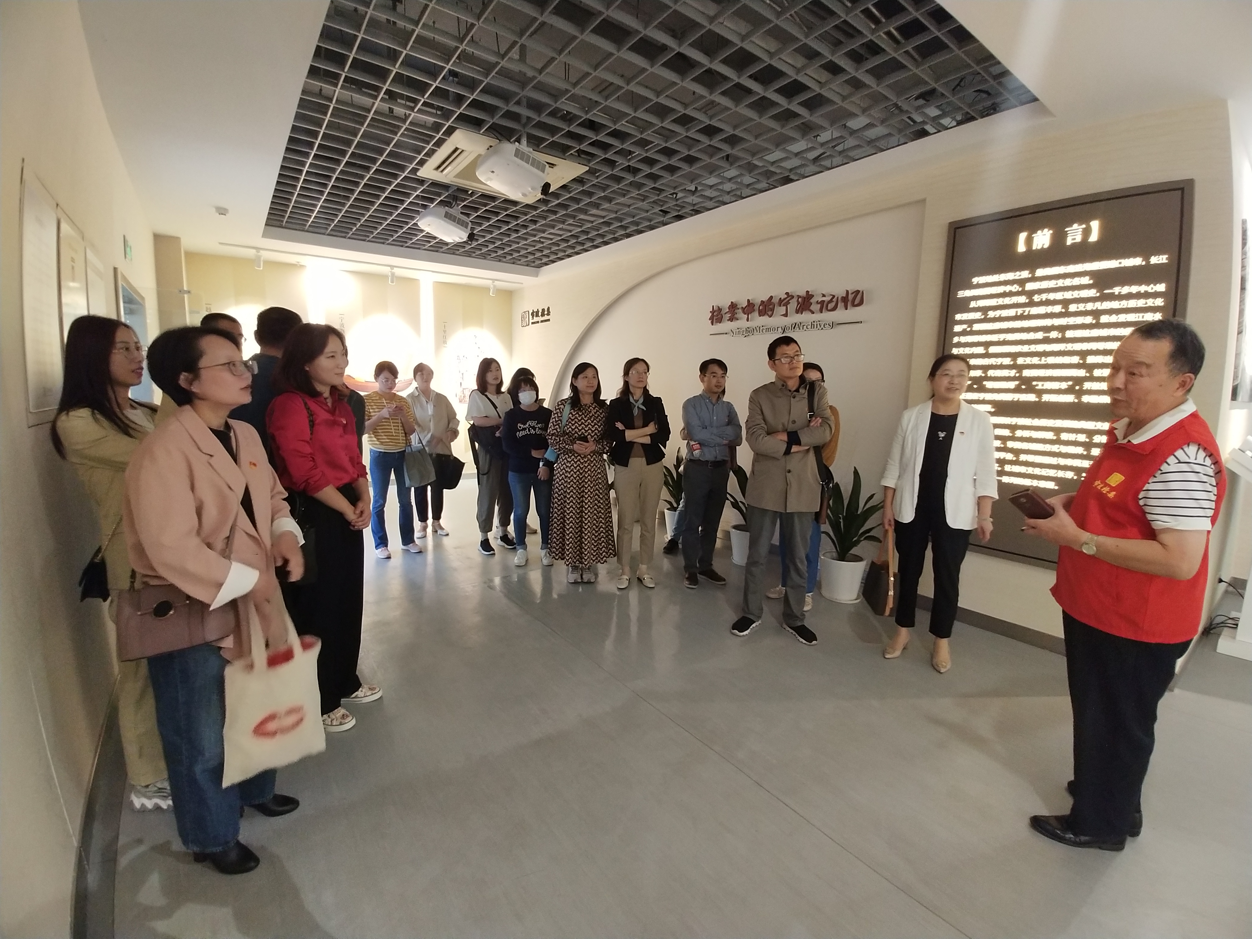 本次活动在宁波市新四军历史研究会副会长兼秘书长、宁波市高等院校“知行新说”思政课导师 、宁波市社科普及讲师团讲师、2020年宁波(市直机关)最美“银辉”志愿者、老红军后代叶小湖老师的带领下开展,教工党员们参观了宁波市档案馆的三个主题馆:”不忘初心、牢记使命主题教育展“;档案记忆中的宁波;宁波解放七十周年建设成就档案图片展。“‘不忘初心、牢记使命’主题教育展”以中国共产党为谋求人民解放、民族振兴、国家富强而不懈奋斗为主线,通过276件档案文献,充分展示中国共产党为人民谋幸福、为民族谋复兴的伟大历程。“档案记忆中的宁波”和“宁波解放七十周年建设成就档案图片展” 介绍宁波建城1200年的历史文化,全面展示中国特色社会主义制度优越性“重要窗口”模范生的风貌。
