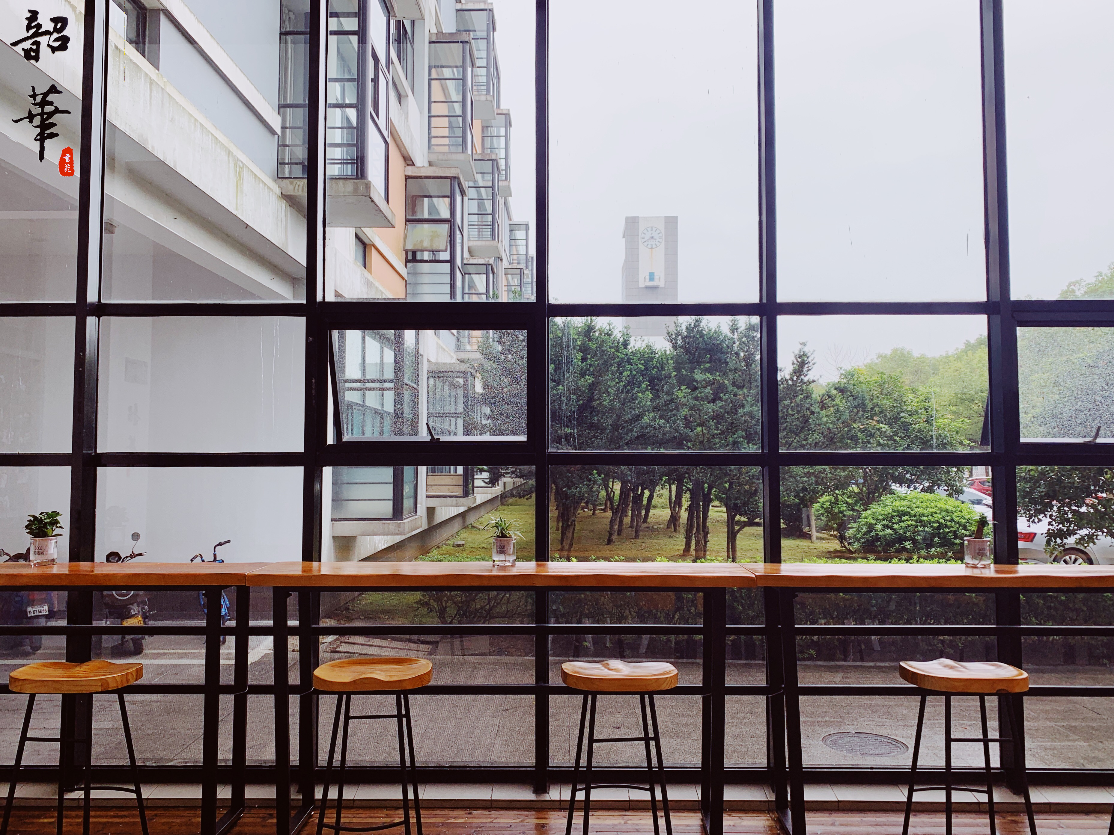 在教学区的人流不息中,择一处静谧,四周有绿植散发生气,抬头便能看到钟楼指针缓缓向前,感慨美好时光的流逝。学院陈雪军教授为书苑欣然提笔“不负韶华”四字。书架上陈列着各式各样的书籍,涵盖了马克思主义新闻观、法治图书、古典文学、师生编纂作品等,可以供来往师生阅读。此外,学校图书馆提供期刊杂志、同学们纷纷捐献书籍等进一步支持开展图书漂流。书苑一侧悬挂着学院刘建民教授“最美课堂”摄影作品,相片上同学们聚精会神、沉浸于课堂的样子也是青春最美好的写实。而在楼梯的墙面上陈列着传媒与法学院优秀校友的相关信息,续写着他们的青春故事,更是激励在校的同学不忘初心、砥砺前行。