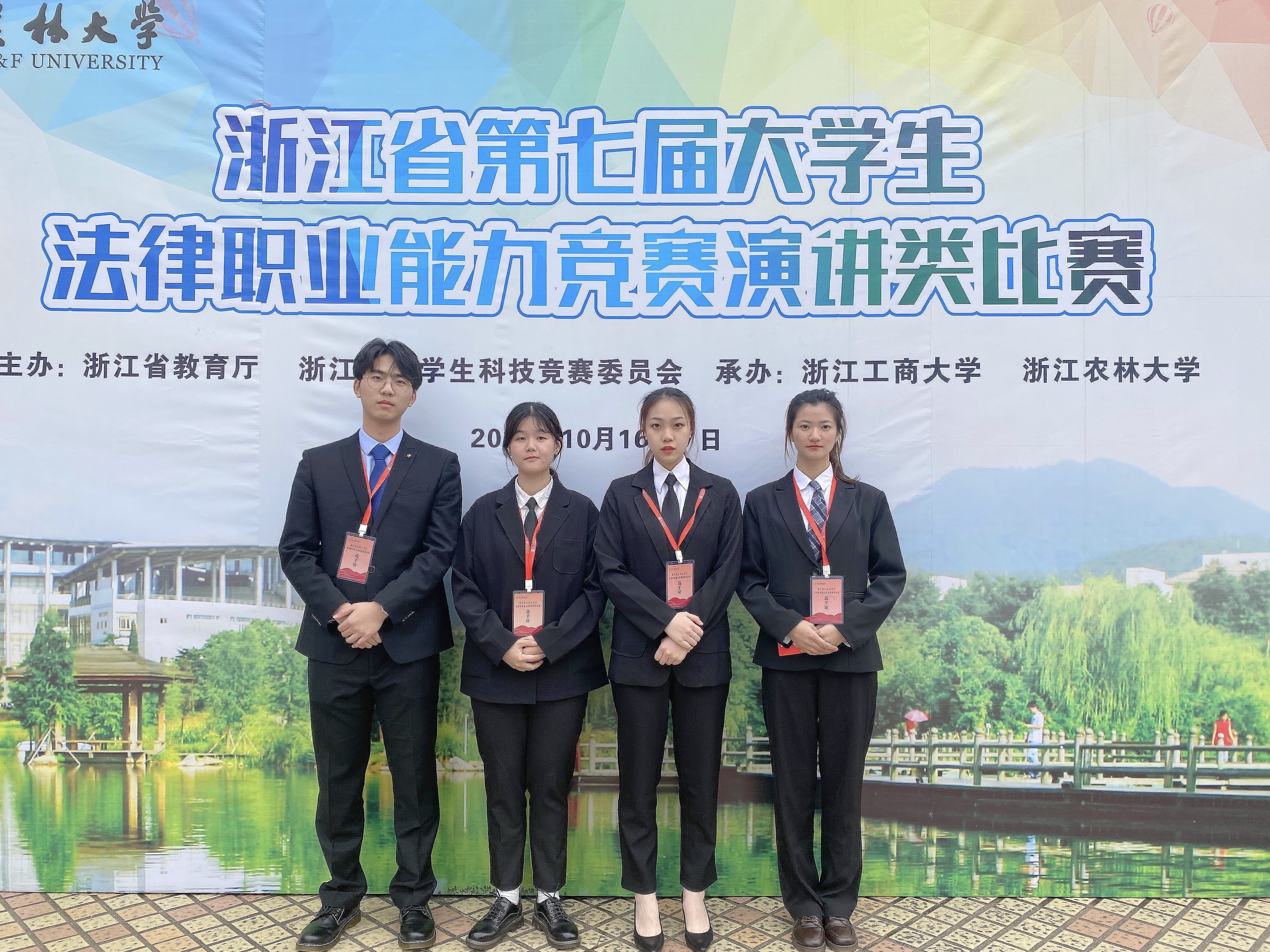 10月17日,传媒与法学院李枫、吕捷、顾子惠、刘春燕等4名学生在学院周仲琦老师的带领下赴浙江农林大学参加浙江省第七届大学生法律职业能力竞赛演讲类比赛决赛。