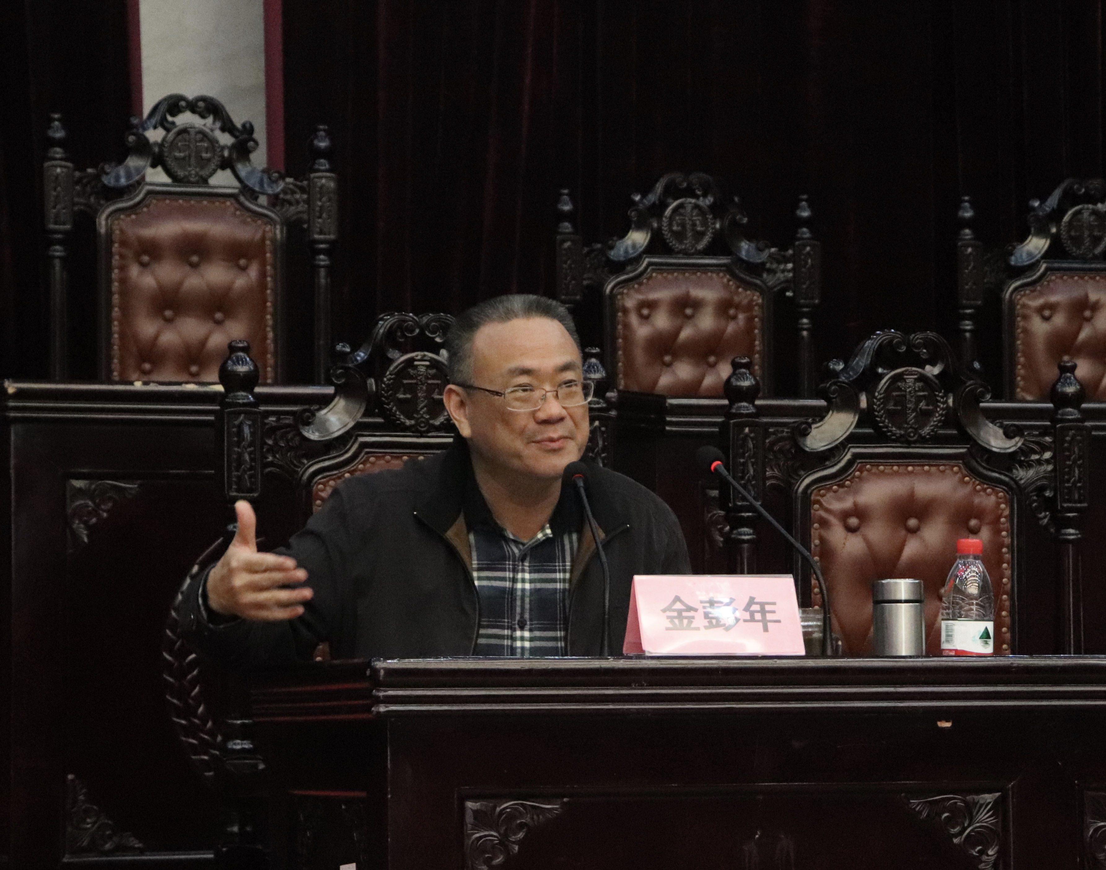 讲座伊始,金彭年教授从法学生未来择业问题入手,对法学专业的就业途径及形式进行系统分析,通过宁波智慧法院等具体事例,强调理论与实践相结合的重要意义,鼓励同学们多去法院、律所等地开展实习来积累自身经验,并在此基础上勇于创新,提升自身的竞争优势。紧接着,金教授强调了法学生应充分掌握正确的学习方法,不断提升法律人所应具备的素养和品质。最后,他结合自身丰富的实践、教学经验给予了同学们宝贵的建议,并表达了对大家的殷切期望。