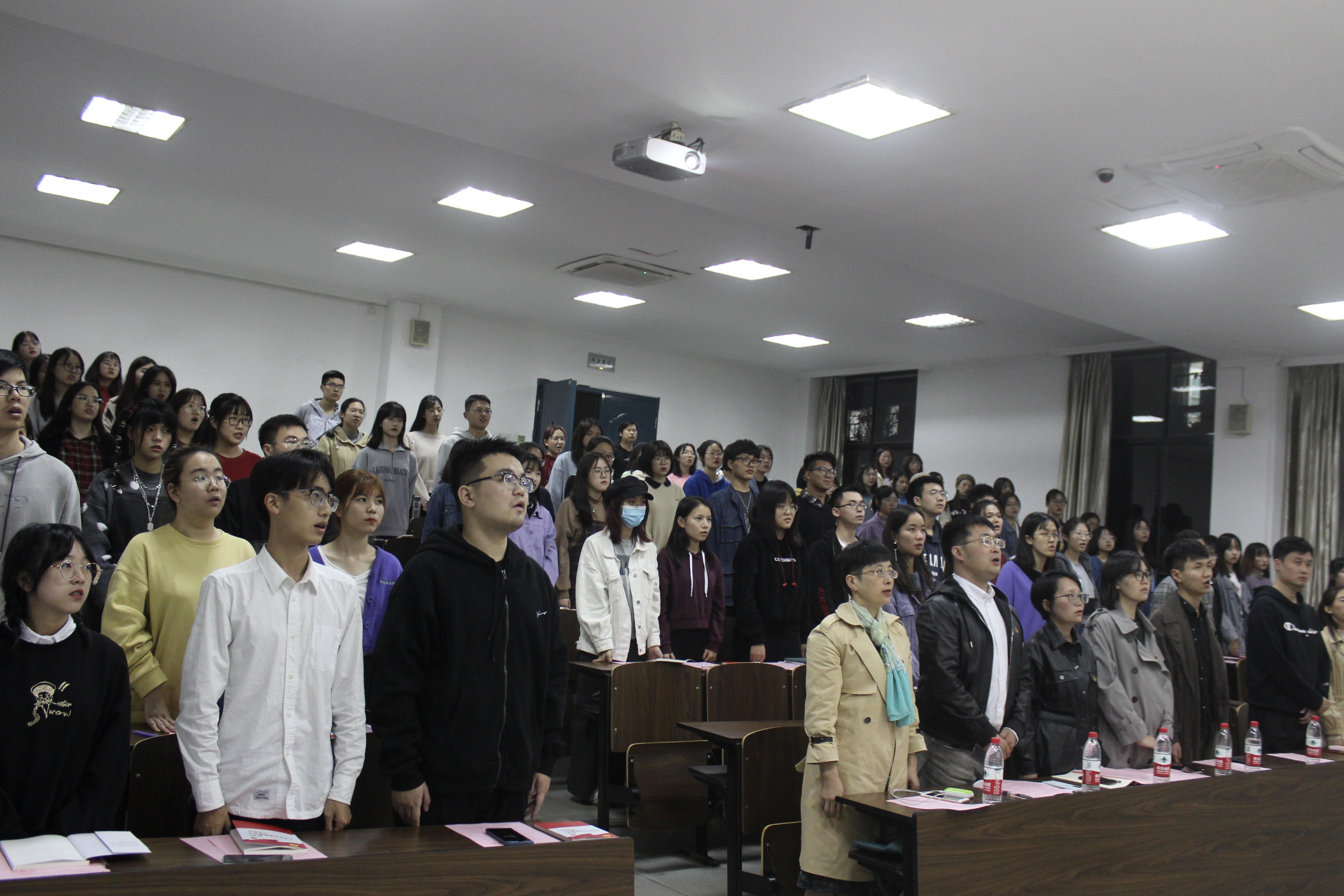 紧接着,传媒与法学院党委副书记、纪委书记胡鹿鸣作动员讲话暨党校第一讲,“新的身份寄予每一位渴望进步、追求卓越的同学们新希望、新要求。”胡老师勉励学员们要端正态度,珍惜党校学习的大好机会;认真学习,深入理解和掌握党校学习的主要内容;亮明身份,引导广大学员做出入党积极分子表率,祝愿大家在党校学有所思、学有所获、学有所成。最后,全体起立,奏唱《国际歌》。