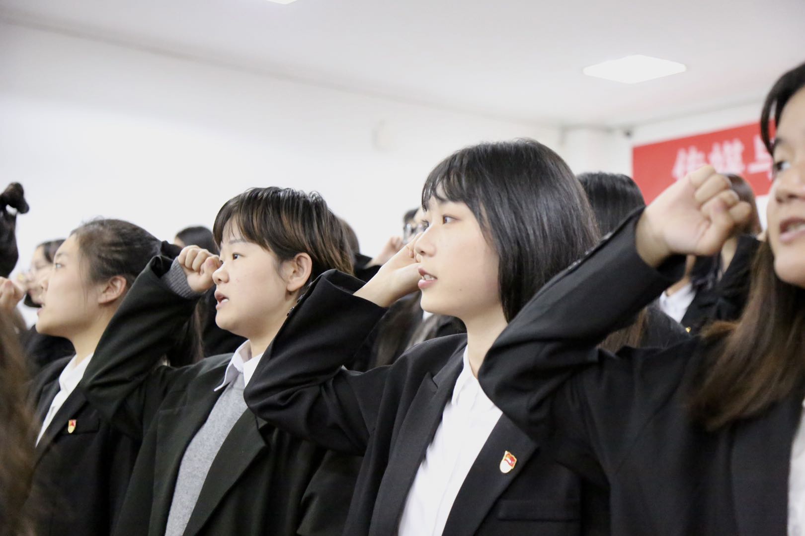 法学学生支部、法学181班王璐作为学生干部代表发言,分别从思想上、学习上、工作上三个层面表示自己会积极进取、努力奉献,为推动学院学生党建工作贡献自己的力量。紧接着,与会党员全体起立,面向党旗,庄严地举起右手握拳进行入党宣誓。在高昂嘹亮的宣誓声中,进一步增强了党员意识,激励着大家不忘初心、牢记使命。