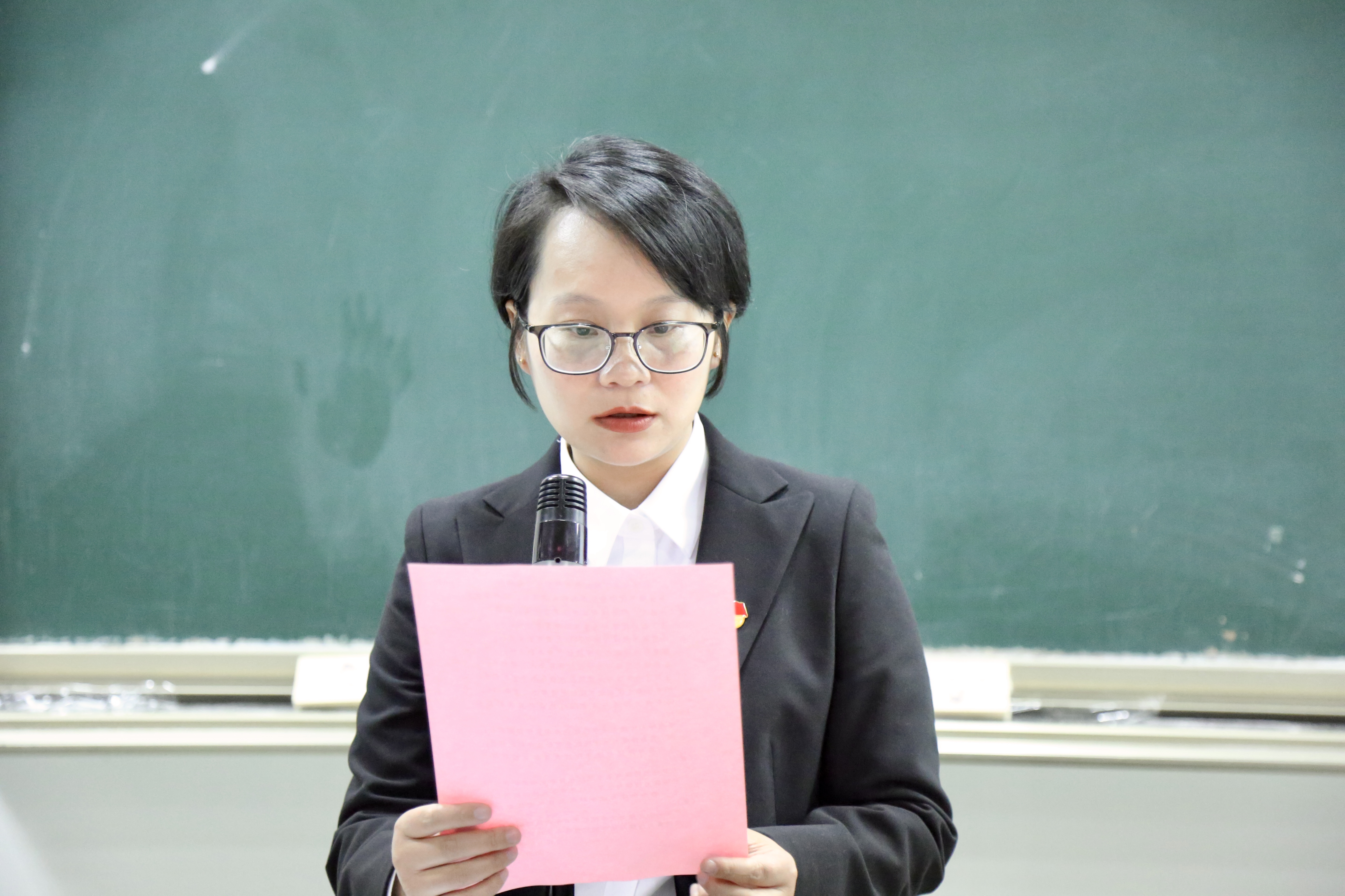 学院党委副书记(主持)朱小红发表讲话,表达了通过成立“红色青年”促使党员教育管理形成制度化、规范化和经常化的期望,提出了“想干事、能干事、干成事”的要求,希望红色青年们把责任落到实处,发挥先锋模范作用。