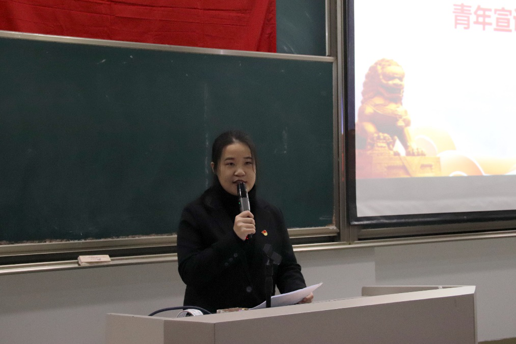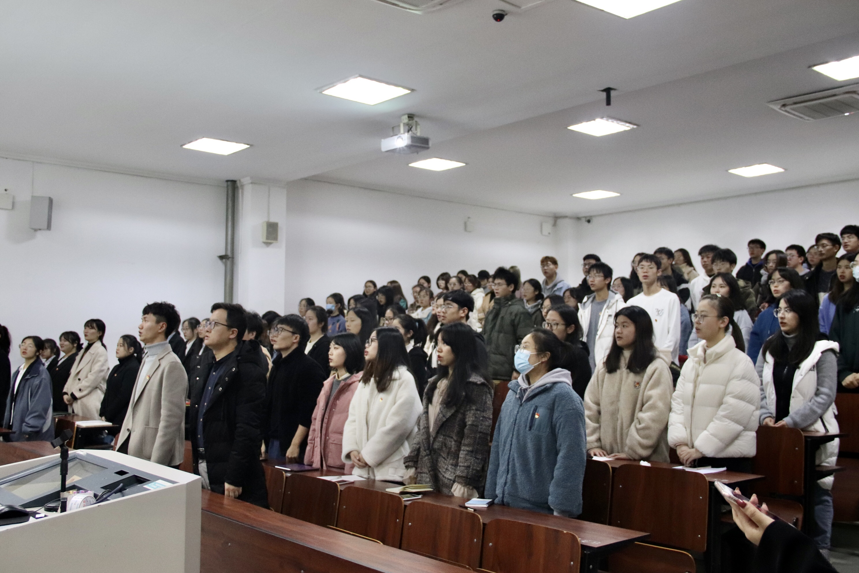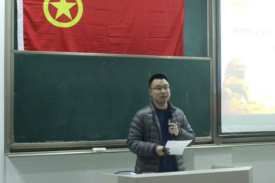 12月10日晚上,传媒与法学院《习近平与青年大学生们》青年宣讲员聘任仪式暨传媒与法“新青年团校”第四讲在SF104教室举行。校团委副书记夏文来、院团委副书记丁六申以及全体传媒与法“新青年团校”学员们参加聘任仪式,仪式由院团委书记、思政副主管曲昊杨主持。