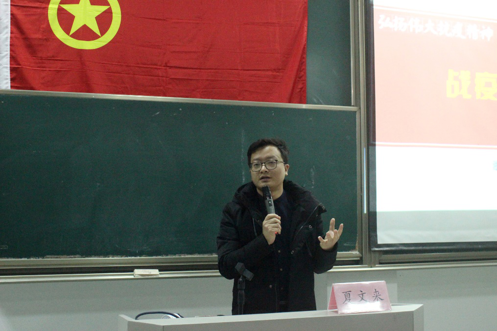 随后,夏文来老师为团校学员们讲授“弘扬伟大抗疫精神”主题团课,结合具体事例揭示了“战疫情,中国为什么能赢”的三大原因:第一,中国是全世界唯一拥有联合国产业分类中全部工业门类的国家,中国共产党的长期执政为“100%工业体系”提供了强有力的保障;第二,中国重生死,更重大义,五千年文明塑造了中华民族的品格;第三,实事求是,不断自我否定,中国共产党把人民群众生命安全和身体健康放在第一位。其中,夏文来老师讲述了“二战时期积贫积弱的中国人民向2万多犹太难民敞开怀抱”“为让女红军顺利分娩,董振堂率领一个团的战士阻击敌人直至孩子生下”等真实事件,引发了学员们的共鸣并为之动容。最后,夏文来老师对青年大学生提出了两点思考:一要考虑清楚“为了谁”和“成为谁”,二要思考时代大潮和个人奋斗关系。他强调作为群团组织是要为党和人民凝聚人心,全面推进依法治校,因此更要想清楚是“为了谁”。话音未落,现场响起热烈的掌声。