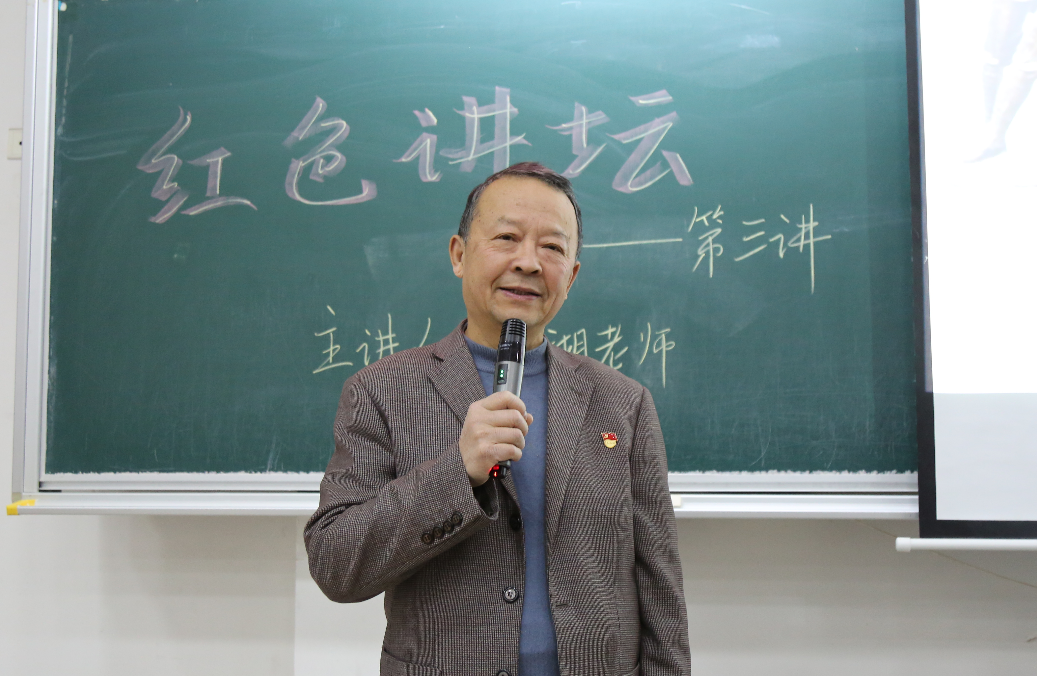 为了追寻红色记忆,牢记初心使命,12月17日下午,传媒与法学院在NC102教室举办“红色讲坛”第三讲。宁波新四军历史研究会副会长兼秘书长、宁波市高等院校“知行新说”思政课导师叶小湖应邀担任主讲人,他以详尽地讲解和丰富的图片资料带领现场的党员、重点发展对象和积极分子们重温新四军抗日的伟大功绩。本次讲座由传媒与法学院党委副书记、纪委书记胡鹿鸣主持,学院党委组织委员、思政主管、法学学生支部书记赵红参加讲座。