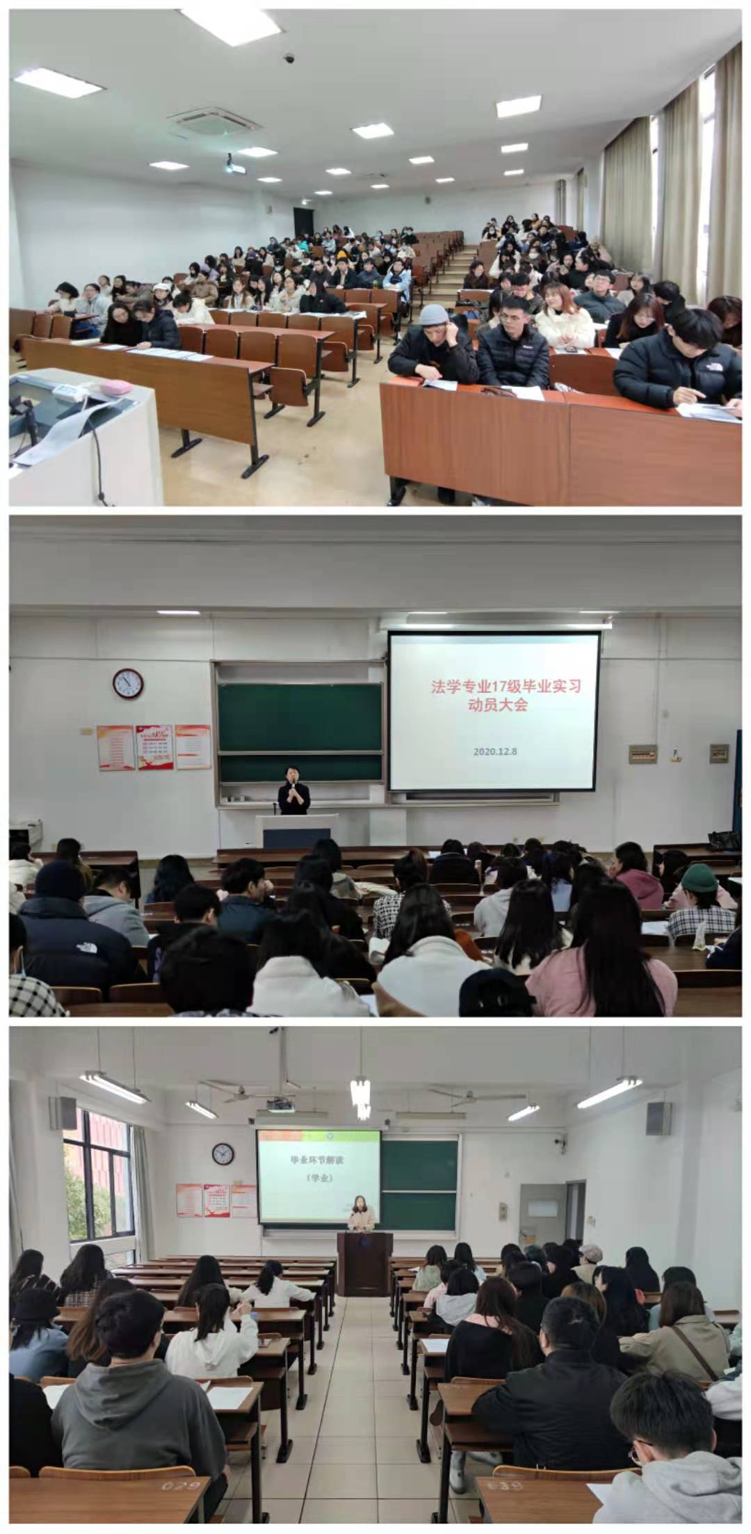 本年度因为疫情影响、毕业班实习等原因,各专业返校时间不一,毕业生大会改为分专业召开。每场大会都会邀请学院领导、系所老师、教务老师、学工老师到场,分别从毕业设计相关要求、学业毕业流程、就业档案流程几个方面给毕业生明确时间节点、当下任务以及后续安排。近年来学院考研升学屡创佳绩,2020届毕业生国内外升学率达18%,学院充分考虑学生考研的紧迫需要,将毕业设计的环节合理调整,使得备考同学有完整的考前冲刺阶段;针对毕业生常出现的毕业就业问题,教务、学工老师进行详细讲解。从普遍性的学分问题,个别的如违纪处分后学位申请以及延长学制等,都面面俱到。下发《就业协议书》、《毕业生登记表》等。毕业季学生需要频繁出入校园,学院领导关心同学们的实习安全以及身体健康,叮嘱同学们在疫情防控允许的情况下积极实践,顺利度过学社衔接期,步入社会。