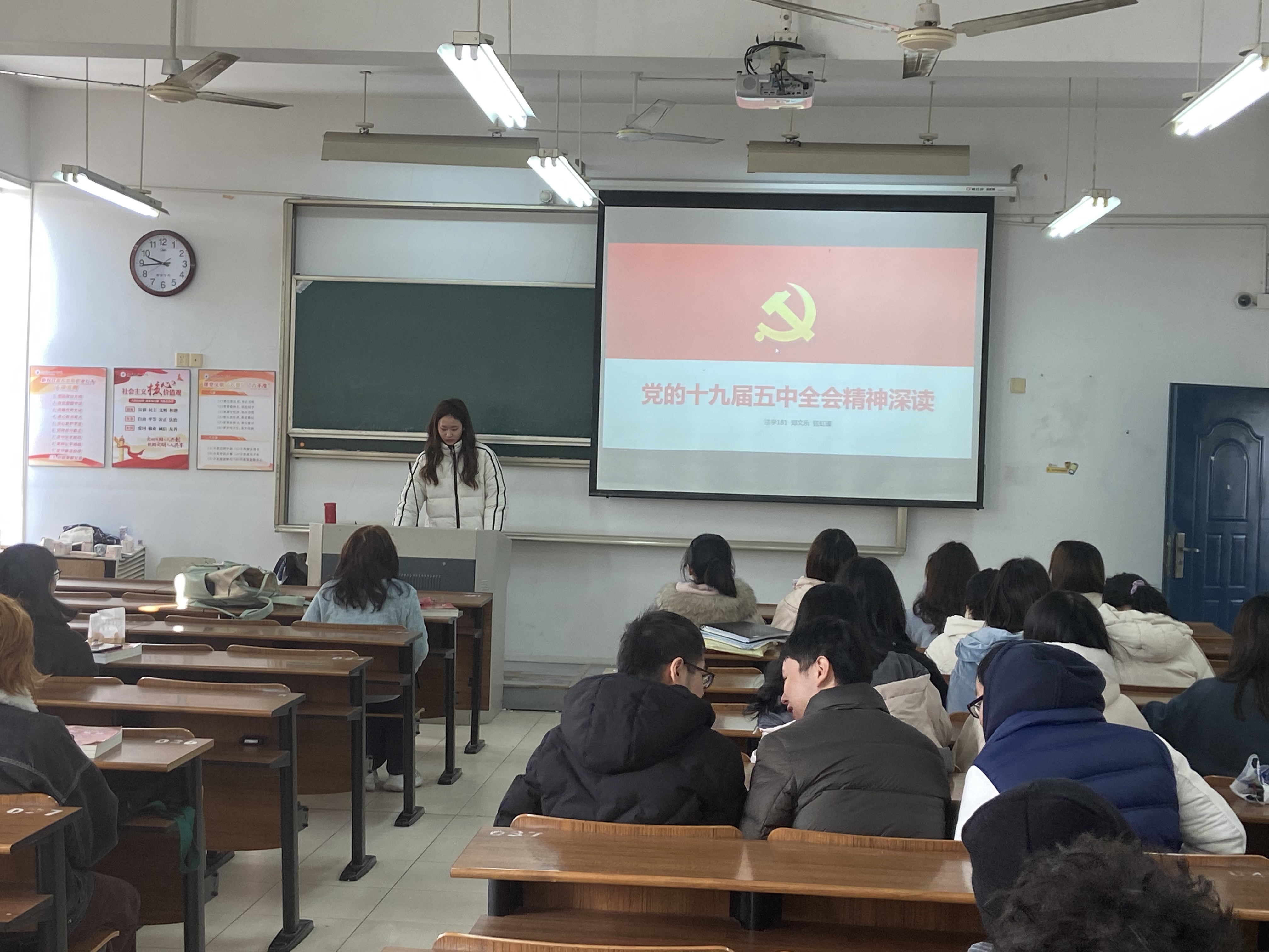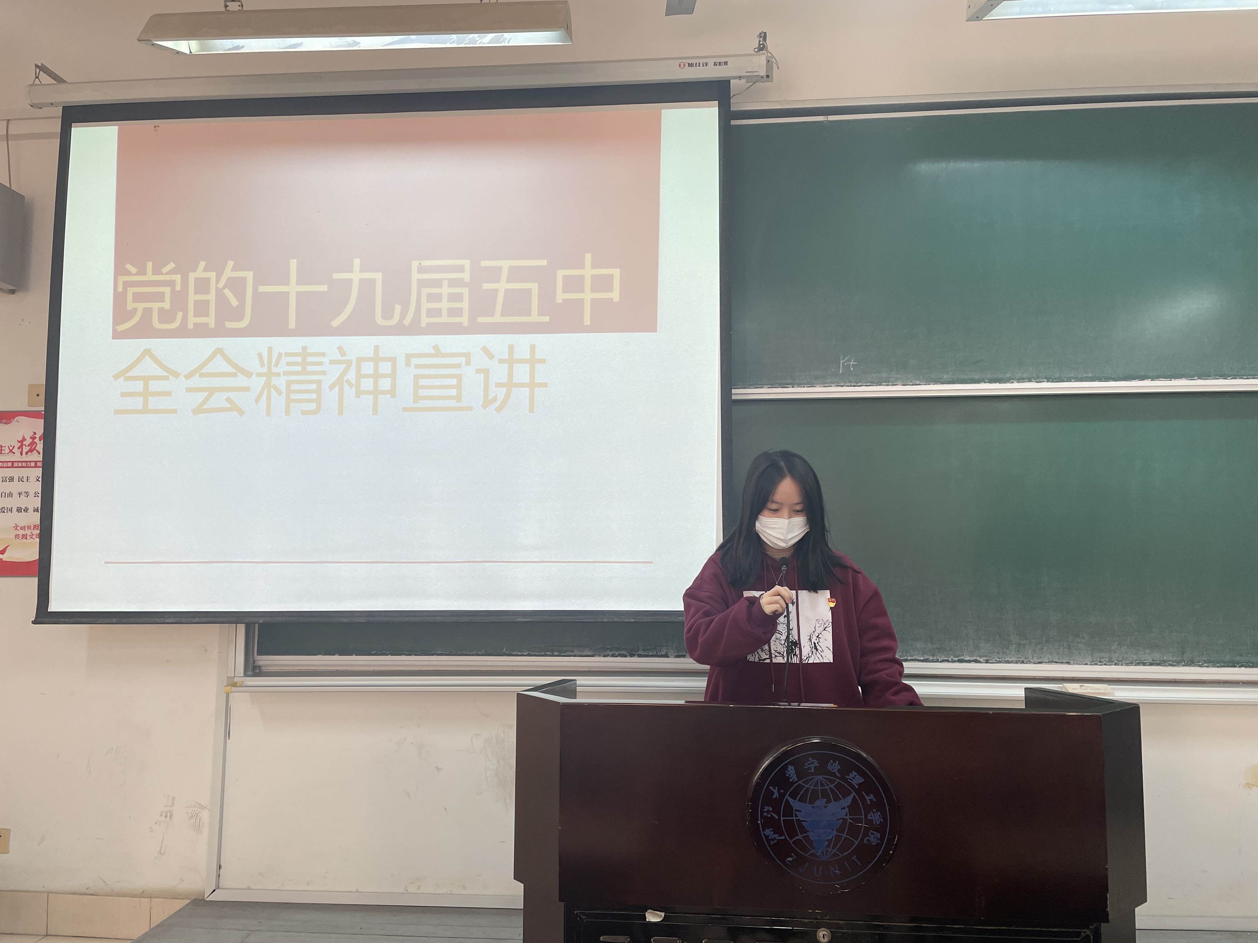 为学习贯彻党的十九届五中全会精神,近日,传媒与法学院法学学生党支部开展了法律“集结号”之党的十九届五中全会精神宣讲进班级活动。