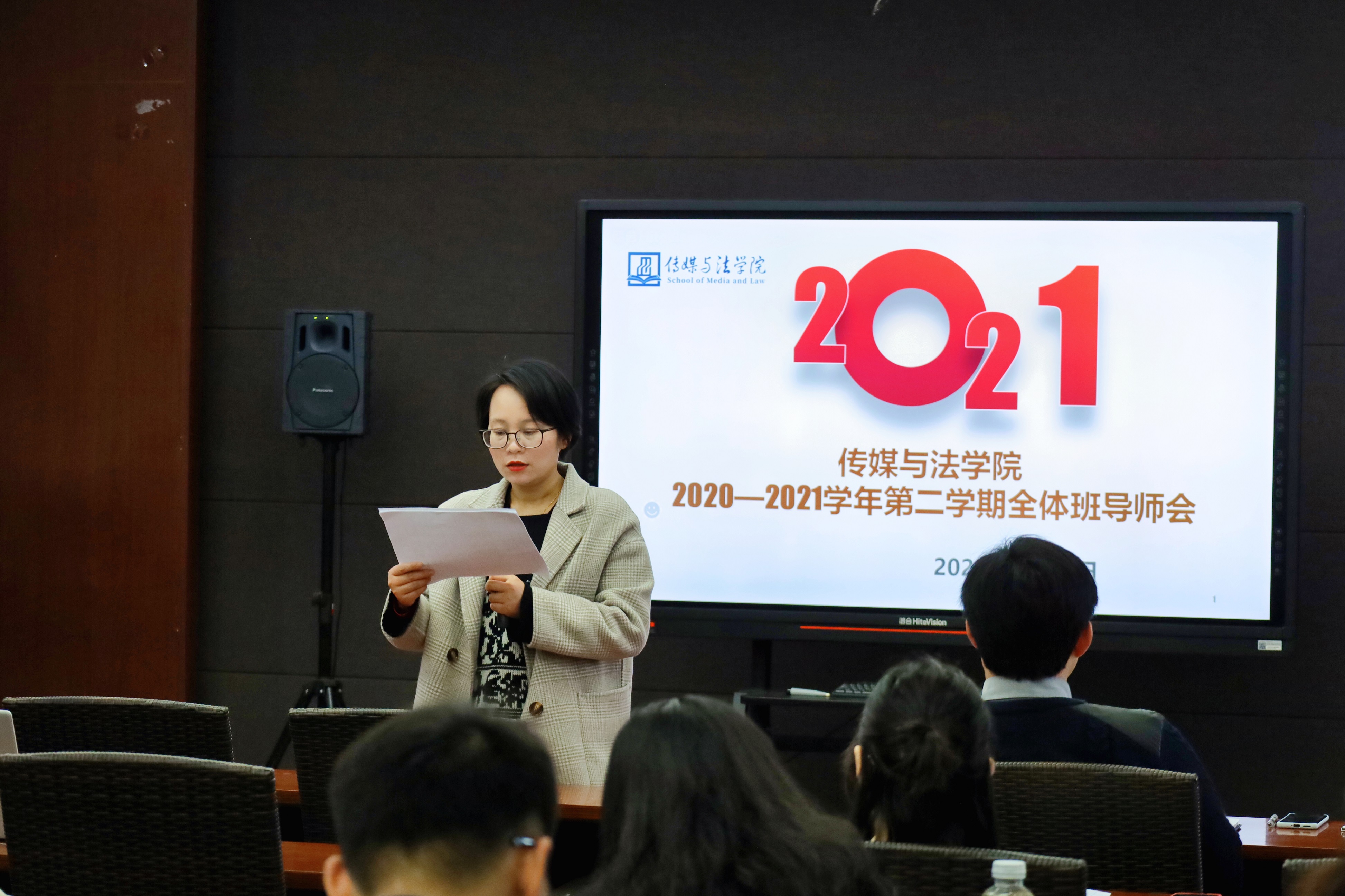 为了更好地推进新学期学生的教育管理和人才培养工作,保障新学期各项工作的顺利开展,3月26日下午,传媒与法学院于SC101会议室召开2020-2021学年第二学期全体班导师会议,并就毕业生的就业工作进行了专项部署和交流。学院党委副书记、纪委书记胡鹿鸣、全体班导师、辅导员参与会议。