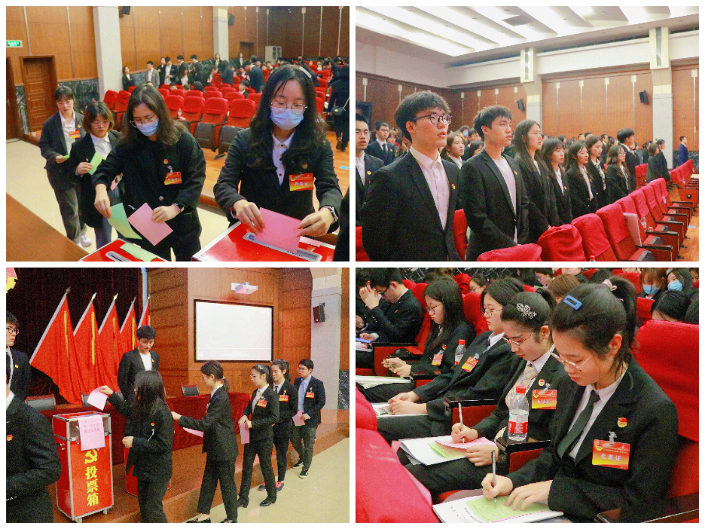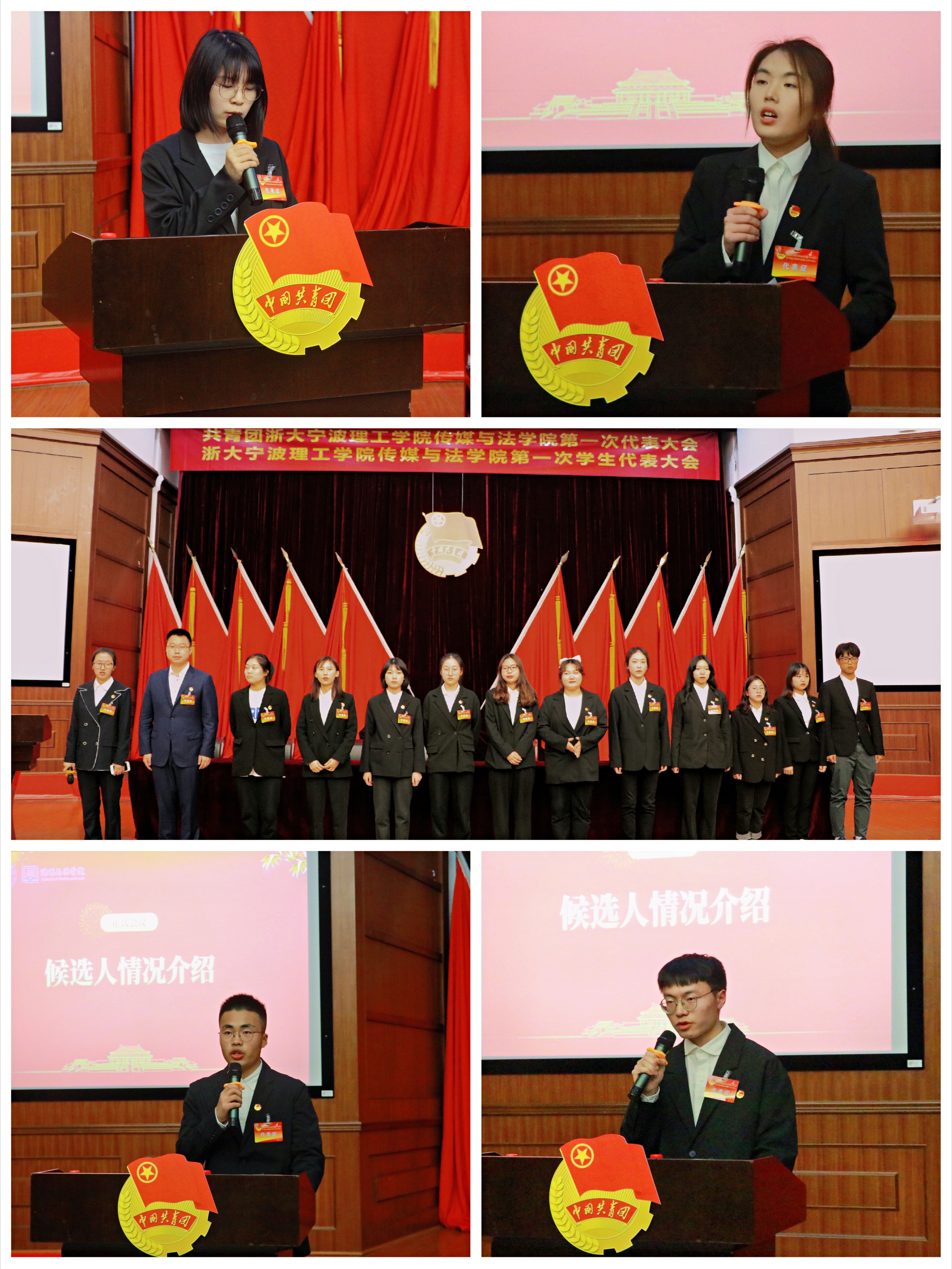在审议通过大会选举办法、大会监、计票人建议名单等文件后,团委委员候选人和学生会主席团候选人分别进行竞选演讲。由总监票人赵红主持大会选举,经过各代表团民主无记名投票成功选举产生共青团浙大宁波理工学院传媒与法学院第一届委员会委员和浙大宁波理工学院传媒与法学院第一届学生委员会主席团成员。