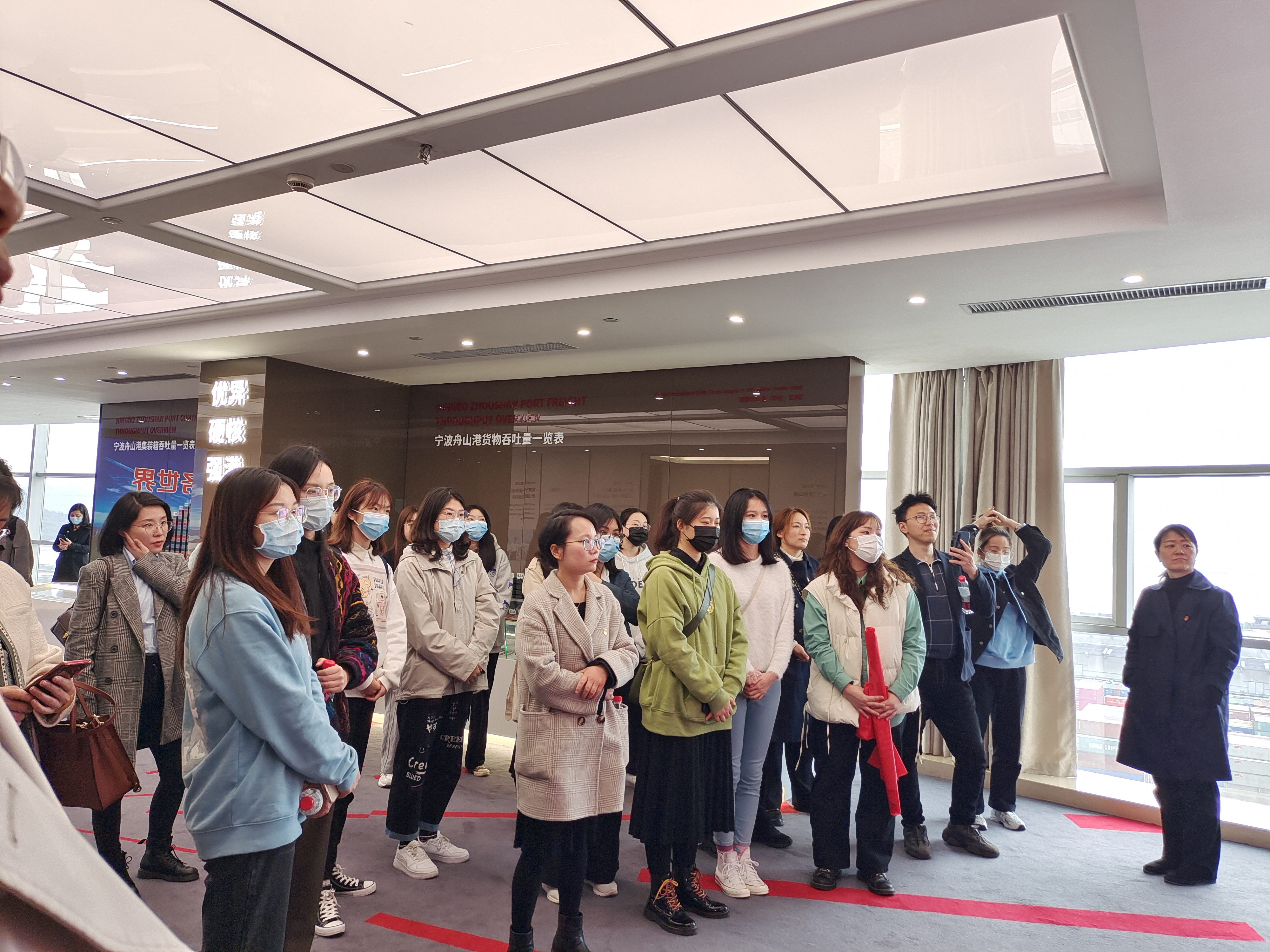 穿山港区集装箱码头,是全球第二大单体集装箱码头,是目前我国前沿水深最深、泊位等级最大、装卸设施最先进的集装箱码头之一,在“一带一路”建设中发挥了枢纽作用。2020年3月,习近平总书记在浙江考察期间,首站来到宁波舟山港穿山港区。他强调,宁波舟山港在共建“一带一路”、长江经济带发展、长三角一体化发展等国家战略中具有重要地位,是“硬核”力量。学院师生沿着习近平总书记在宁波舟山港穿山港区考察时的足迹,站在港区的室外平台,俯瞰港区全貌,远眺远洋轮船的装卸作业;也到现场观看码头集装箱作业场景。师生们对港区内一片繁荣景象赞叹不已。