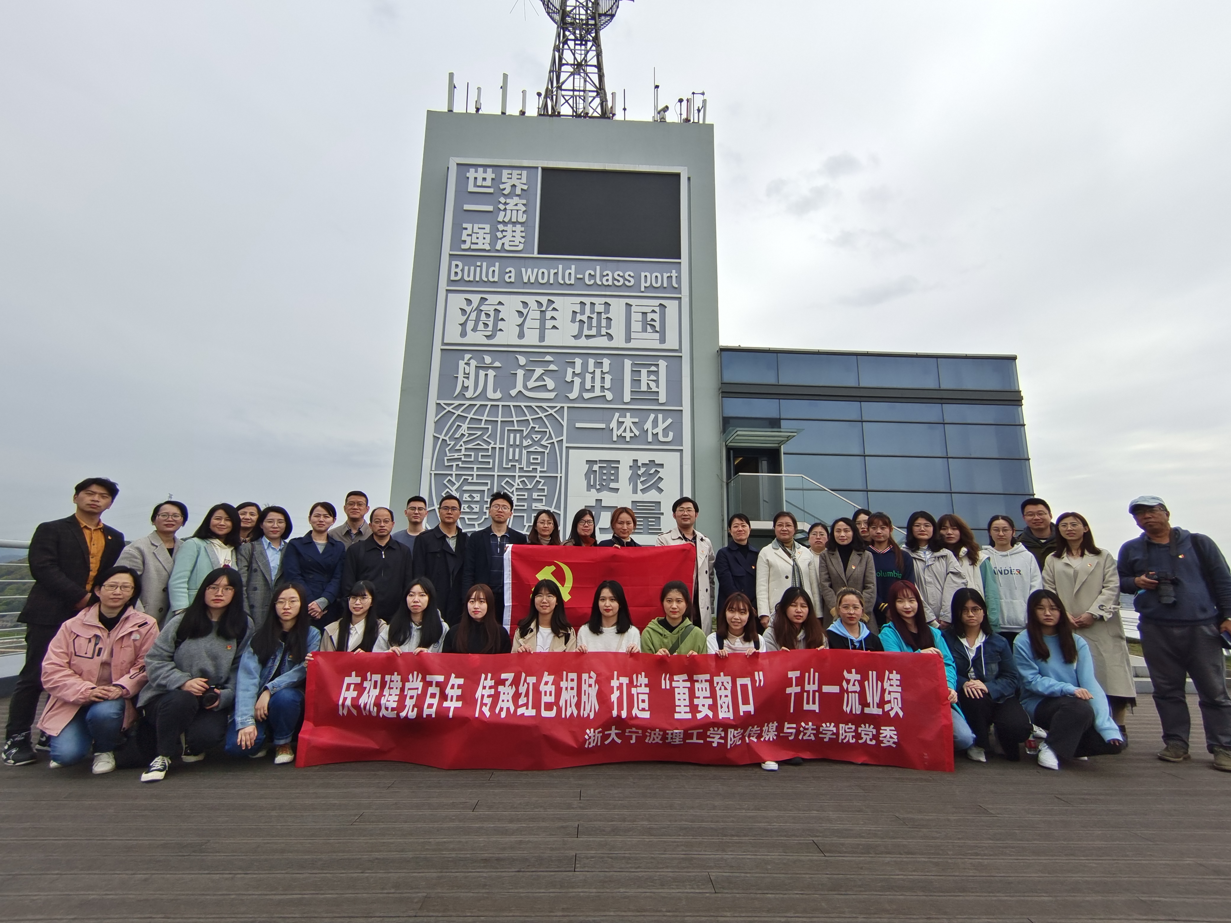 为深入学习贯彻习近平总书记重要讲话精神,提升党史学习教育效果,4月8日下午,传媒与法学院党委组织师生党员赴宁波舟山港穿山港区开展“庆祝建党百年、传承红色根脉、打造‘重要窗口’、干出一流业绩”党史学习教育现场学习会。通过生动的现场教育,全体党员接受了一次党性的锤炼和洗礼。