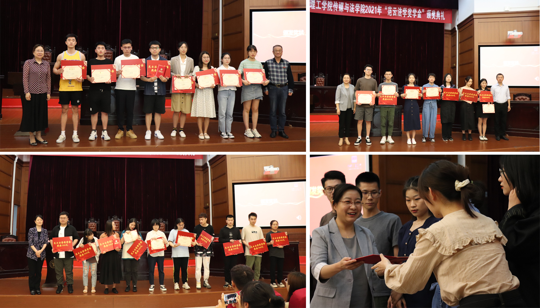 为激励广大学子与新时代同向同行,敢于突破、敢为人先,以聪明才智贡献国家,以开拓进取服务社会,5月26日15:30,传媒与法学院于金宗成法学教学中心举办2021年 “范云法学奖学金”颁奖典礼。出席本次典礼的领有浙江波宁律师事务所主任、一级律师范云,启新特聘教授、国务院政府特殊津贴专家金彭年,浙大宁波理工学院党委学工部副部长、学生处副处长郑毅,传媒与法学院党委副书记、副院长朱小红,传媒与法学院副院长韩缨,传媒与法学院党委副书记、纪委书记胡鹿鸣。传法学院学工办老师、2017-2020级学生代表、2021年“范云法学奖学金”获得者们参加了典礼。本次典礼由胡鹿鸣老师主持。