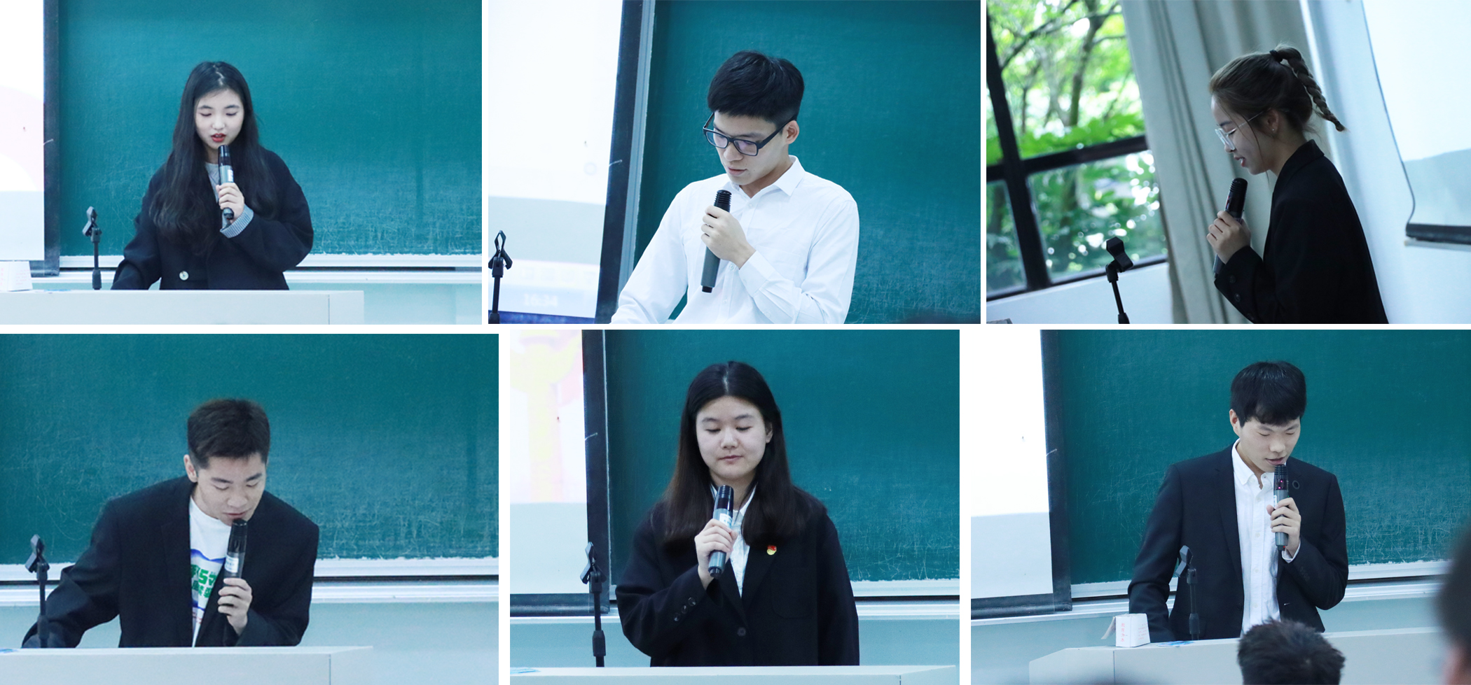 在两位学姐发言之后,学院团学的各个学生组织代表,按照之前抽签决定的顺序上台,对近一个学年以来自己部门的具体工作进行了总结汇报,由台下的辅导员老师和主席团们从PPT内容、汇报同学整体形象语言组织、以及部门具体工作详情等方面综合打分。在所有的部门汇报结束后,李倩倩老师对本次活动进行了简单的总结并表达了自己对学生工作的感受,希望未来的学生工作能够越来越好。