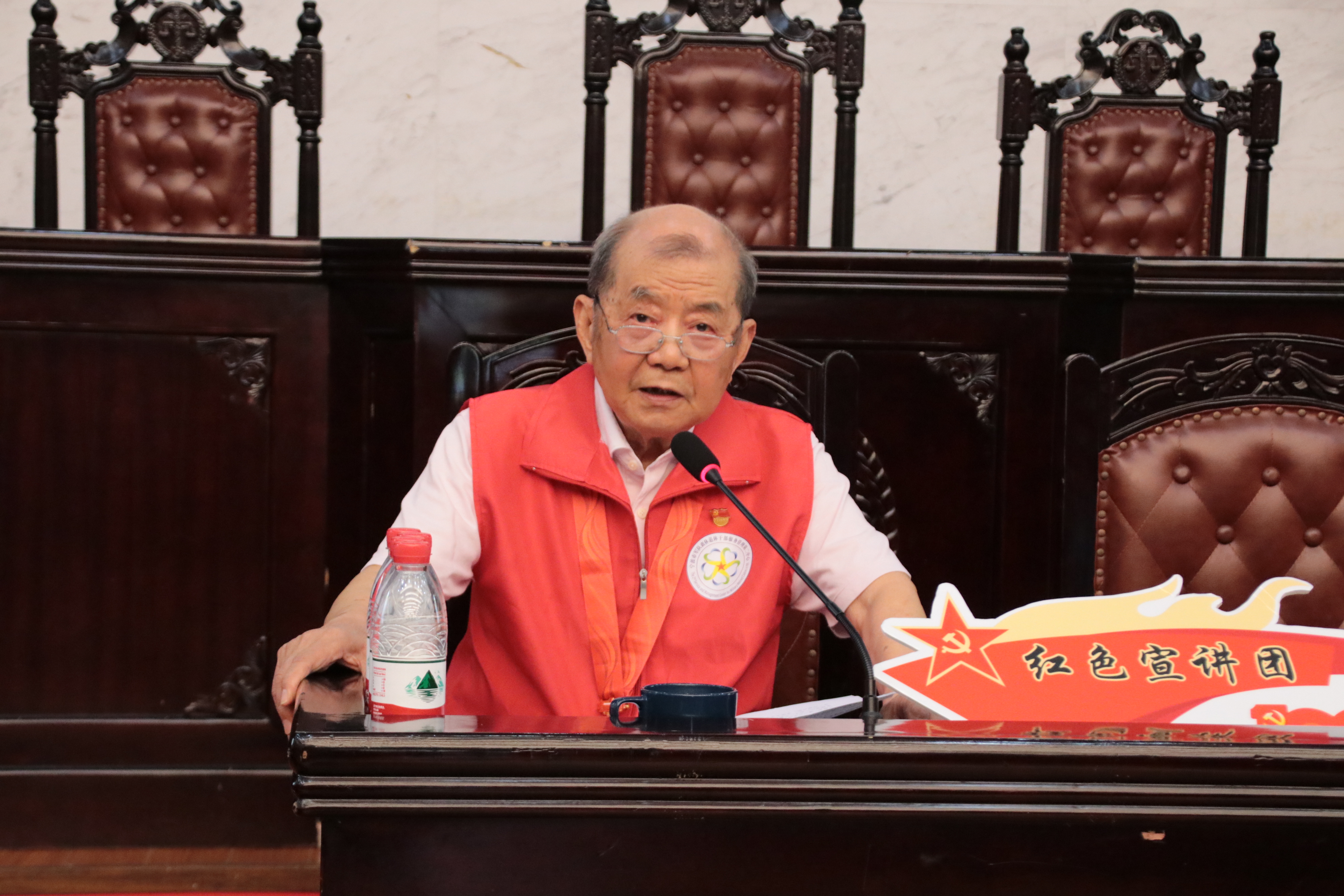 黄学祚同志则向大家讲述了抗美援朝时期风餐露宿的艰苦军旅生活以及一幕幕扣人心弦的战场故事。他提到,参军多年来,他目睹了许多英烈为党为人民冲锋陷阵、无私奉献的场面,我们今天的幸福生活,是与革命先烈的付出密不可分的。最后,黄学祚同志向大家表达了自己的美好祝愿,希望大家时刻保持共产党人的信仰,努力奋斗,成为国家栋梁。黄学祚同志今年