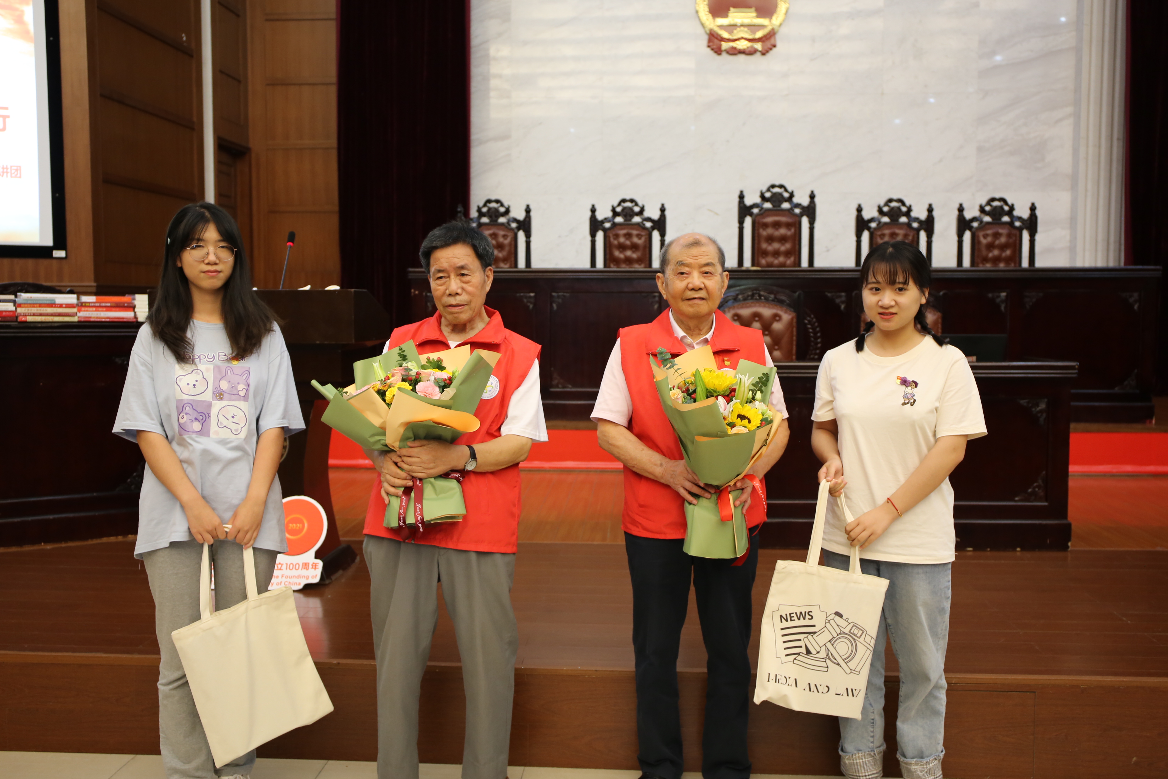 活动最后,学生代表为陈沼同志、黄学祚同志赠送鲜花和礼品,并在他们的见证下,毕业生党员代表为学院红色书屋捐赠书籍。