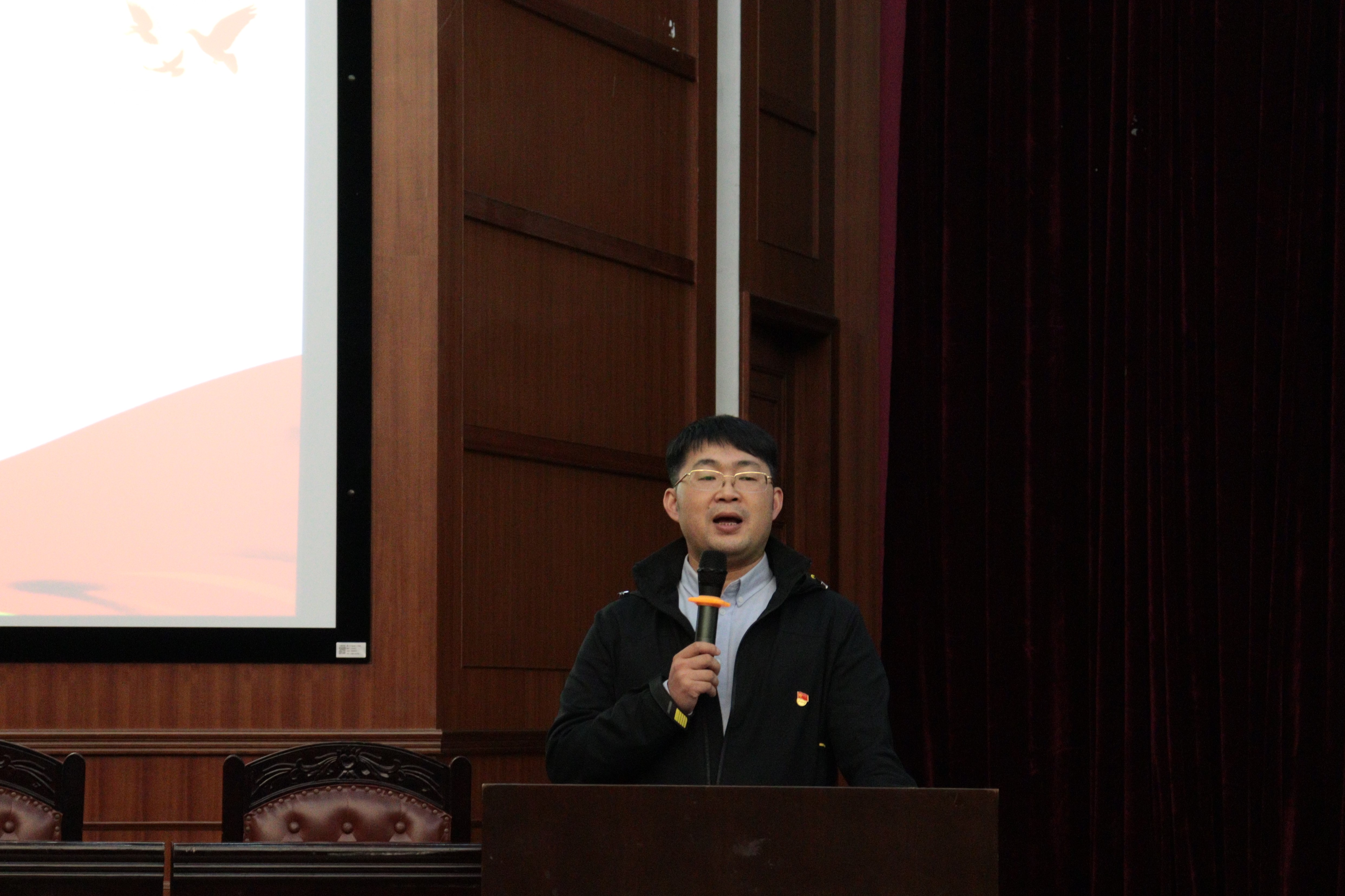 紧接着,传媒与法学院党委副书记、纪委书记胡鹿鸣老师作开班动员讲话。胡老师以往期党校情况为例对本期党校的学员作出三个方面的要求。首先,他要求党校学员端正态度,珍惜在党校系统科学地学习党的知识的机会。其次,党校学员需要积极主动,加强学习,多思考,重实践。最后,党校学员要在学生群体中敢于亮身份,发挥表率带头作用,为文明校园建设等做出自己的一份贡献。最后,开学典礼在慷慨雄壮的国际歌中落下了帷幕。