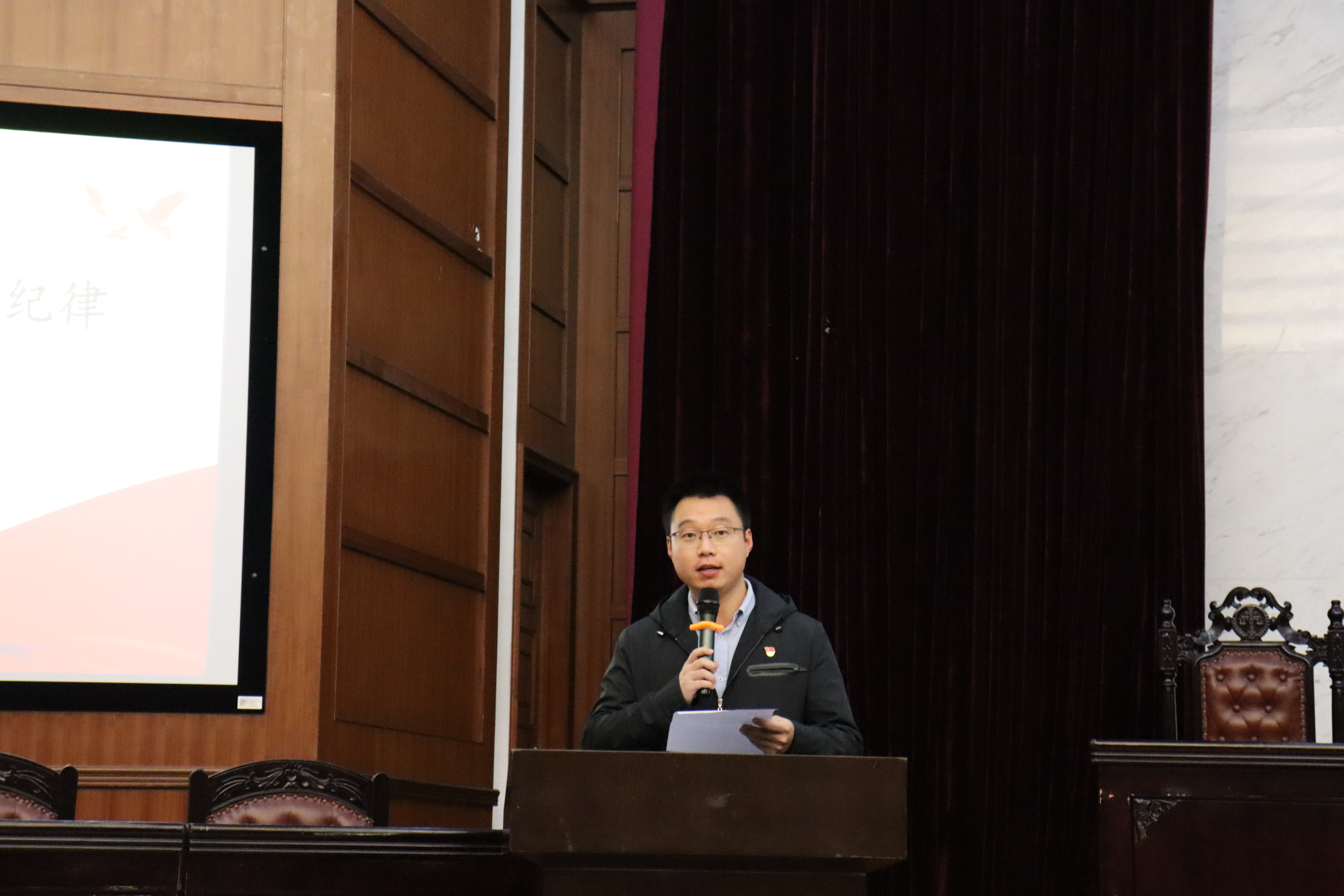 开学典礼后,马克思主义学院徐益亮以“坚持中国共产党坚强领导”为题进行了党校第一讲理论教学。主要讲述了中国共产党是什么样的党和中国共产党的领导核心地位两个方面的内容。徐老师用中共一大13位代表不同的选择和命运引出了中国共产党的初心使命,向党校学员展现了中国共产党是一个什么样的党。同时,他从党的领导地位的“合法性”和“特殊性”两个方面说明了为什么中国共产党具有领导核心地位。现场掌声不断,学员们积极主动地参与到课堂中。