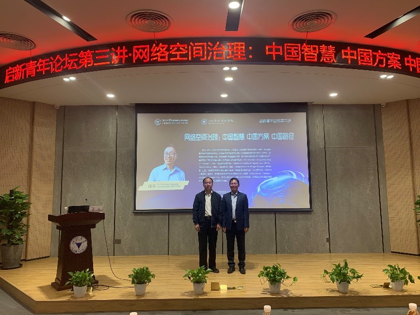 10月26日下午,启新青年论坛第三讲在校区启新大讲堂隆重开讲。浙江大学光华法学院特聘教授、国家社会科学基金重大项目“建立健全我国网络综合治理体系研究”首席专家程乐教授应网络空间治理与数字经济法治(长三角)研究基地邀请,面向浙江大学宁波校区和浙大宁波理工学院师生作“网络空间治理:中国智慧 中国方案 中国路径”学术报告,与师生分享研究心得。