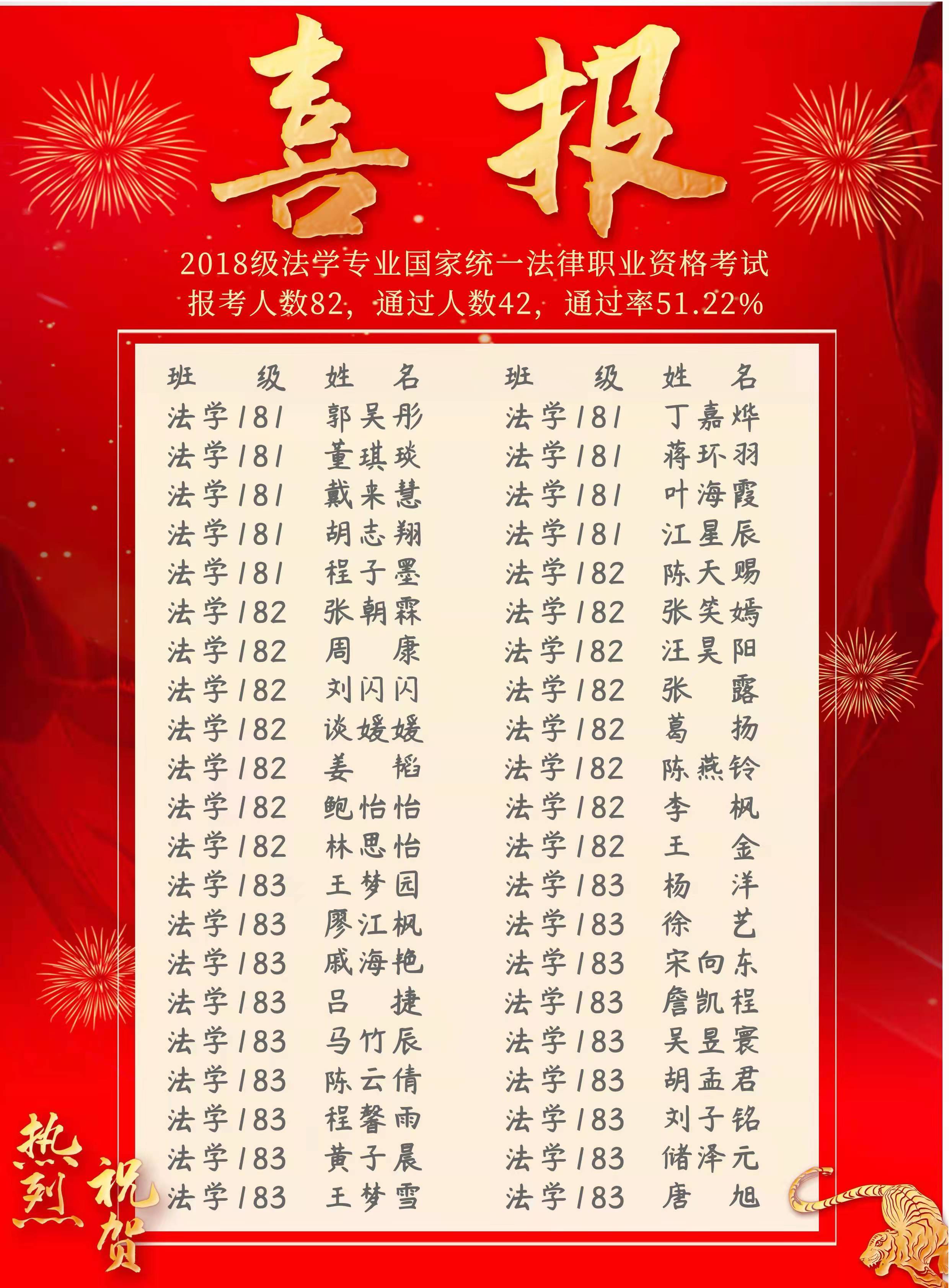 随着国家公布2021年国家统一法律职业资格考试主观题成绩,我院陆续接到学子传来的喜讯,法学专业2022届学生82人参加2021年国家法律职业资格考试,59人通过客观题考试,通过率为71.95%,42人通过主观题考试,通过率为71.19%,创学院法考成绩历史新高!
