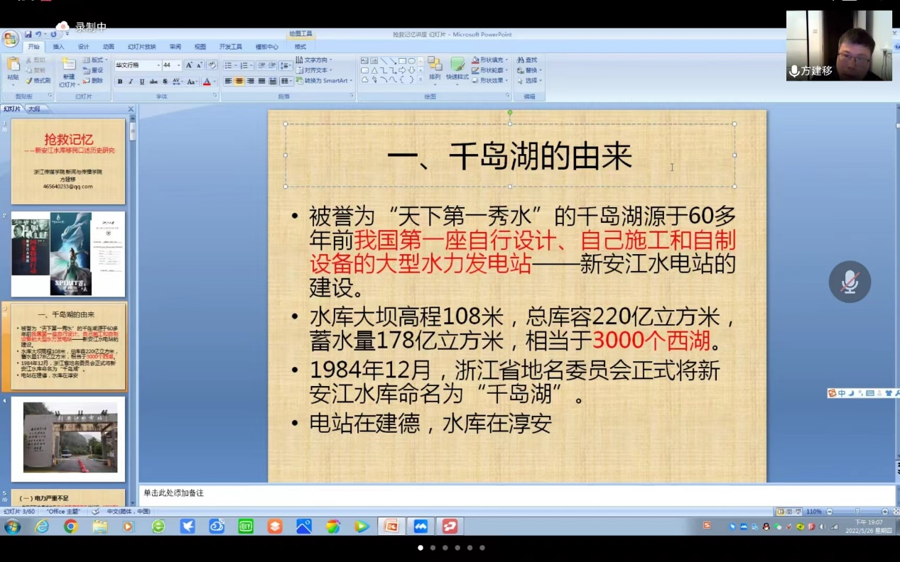 5月26日晚,传媒与法学院在线上举行了“甬新讲堂”第六讲。浙江传媒学院方建移教授应邀为我院师生作《抢救记忆:新安江移民口述史研究》的学术讲座。学院“卓越班”学术导师、“卓越班”学员及其他感兴趣的校内外师生参加此次讲座,学院院长吴飞教授担任本次讲座主持人。