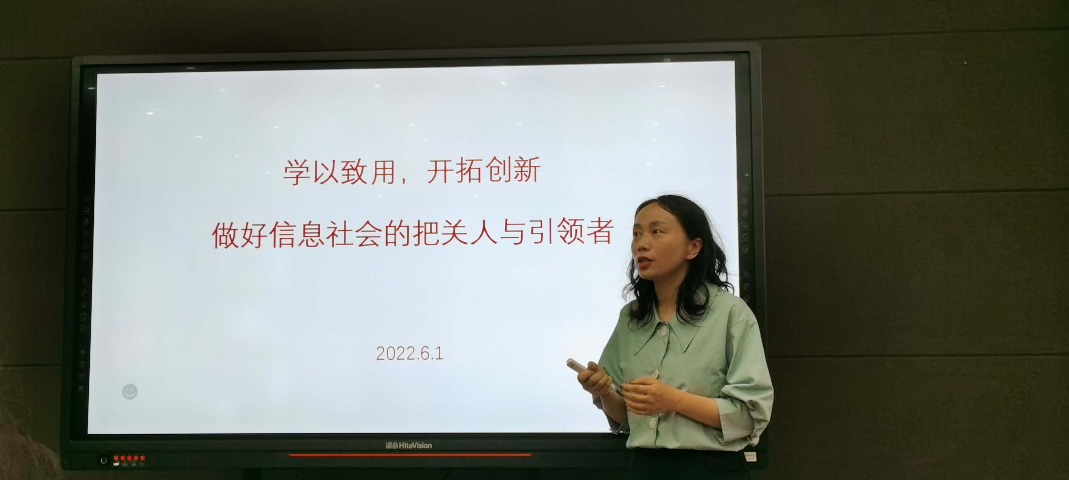 随后,胡晓梅老师结合新传类专业从疫情期间发生的新闻热点事件引入话题,针对一个信息混杂的时代,对大学生党员提出两点要求:一是学以致用,明辨是非,当好信息的把关人;二是开拓创新,发挥所长,做好信息的引领者。作为传媒与法学院学子,学生党员应结合自己的专业,在尊重他人知识成果的前提下,制作有创意有温度的作品,传播身边的真善美;利用新闻传播技能,服务社会、建设国家。