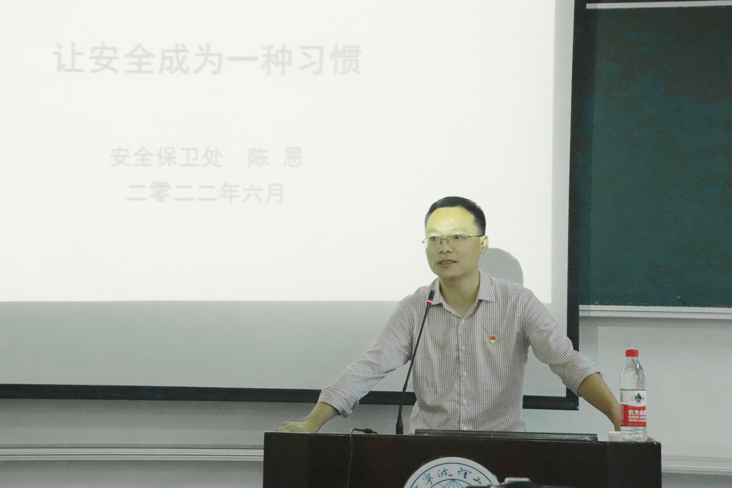 讲座伊始,胡鹿鸣老师向同学们强调了开展安全教育的重要性。随后,陈恩老师从安全教育体系和安全理念着手展开,主要讲述了安全意识的培养和建立、安全方法的运用两大方面,并着重讲解校园安全、网络安全和出行安全等方面的防范措施和预防原则。最后陈恩老师结合电信诈骗等高校真实案例,生动形象地展示了安全防范的重要意义,现场时不时响起热烈的掌声。