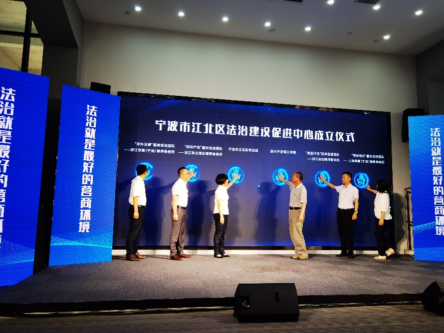 浙大宁波理工学院是本次活动的高校合作单位,我院金彭年教授、韩缨副教授、董玉鹏副教授受邀参会。金彭年教授与江北区司法局领导共同完成了“江北区法治促进中心”成立仪式。