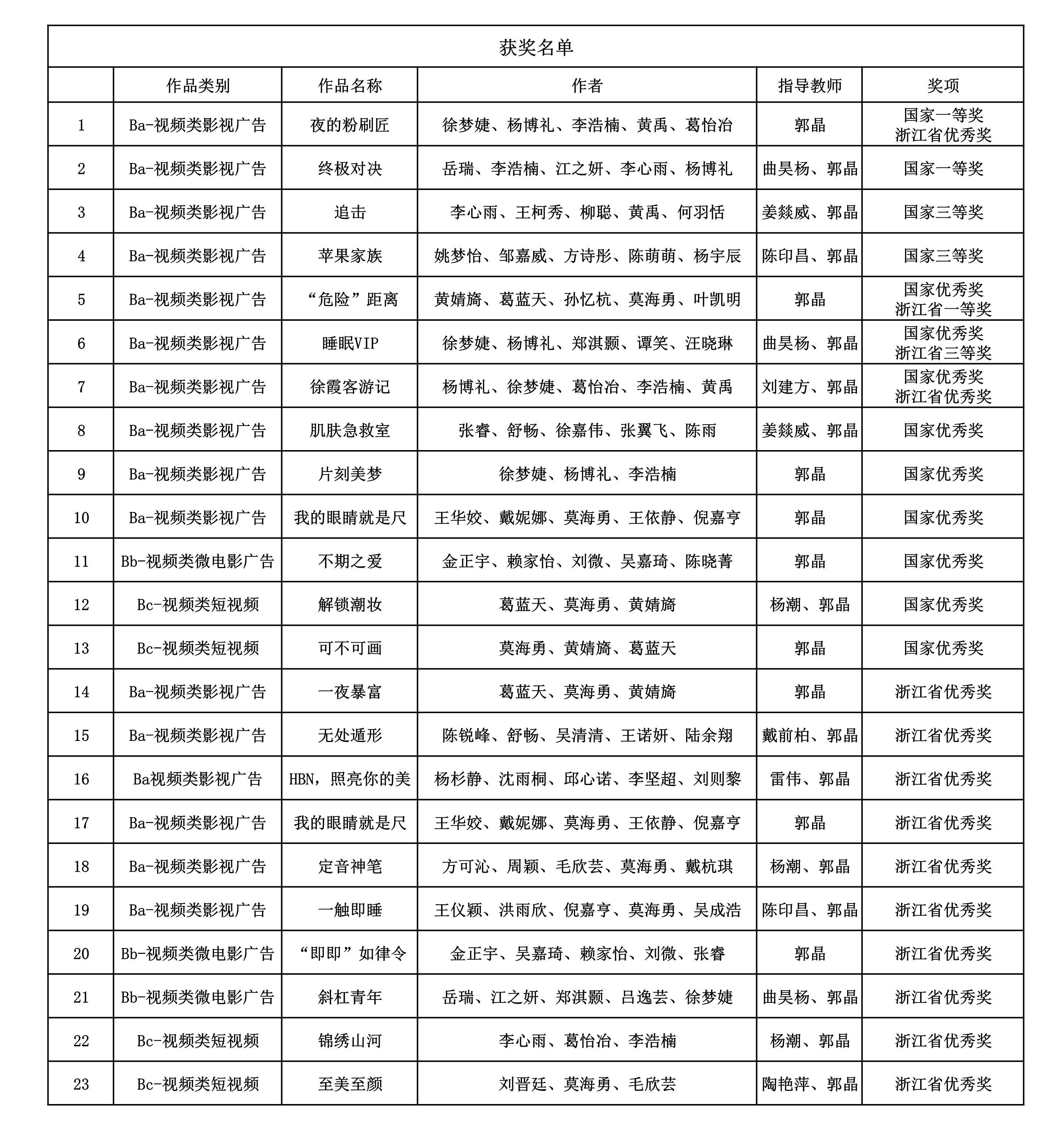 此次大赛,我院学子不负众望,无论是在作品的质量还是数量上都有所突破,共获得13项国家奖项、14项省级奖项。特别是由郭晶、曲昊杨老师指导的岳瑞、李浩楠、江之妍、李心雨、杨博礼同学的《终极对决》和郭晶老师指导的徐梦捷、杨博礼、李浩楠、黄禹、葛怡冶同学的《夜的粉刷匠》两项作品获得了国家一等奖。《终极对决》小组的作品紧紧抓住品牌调性和产品功能,以“八仙过海,各显神通”为灵感,创造出了一个通过设计师大赛来展现产品功能的剧本。而《夜的粉刷匠》小组则是融会贯通,将自己的风格、创意与他人风格相结合最后形成了作品。正所谓“宝剑锋从磨砺出”,这两个作品也正是在成员们日复一日的反复捶打、磨砺后才获得成功的。