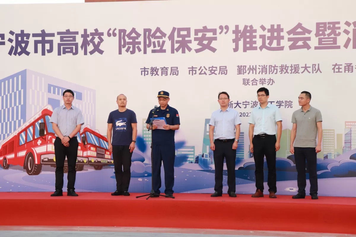 9月22日下午,浙大宁波理工学院联合宁波市教育局、宁波市公安局、鄞州区消防救援大队在学校开展“除险保安”消防安全应急演练活动。传媒与法学院2022级部分学生、学院辅导员、法学学生党支部党员近200余人参与本次演练。浙大宁波理工学院副校长胡余波、宁波市教育局、宁波市公安局、鄞州区消防救援大队领导出席本次活动。