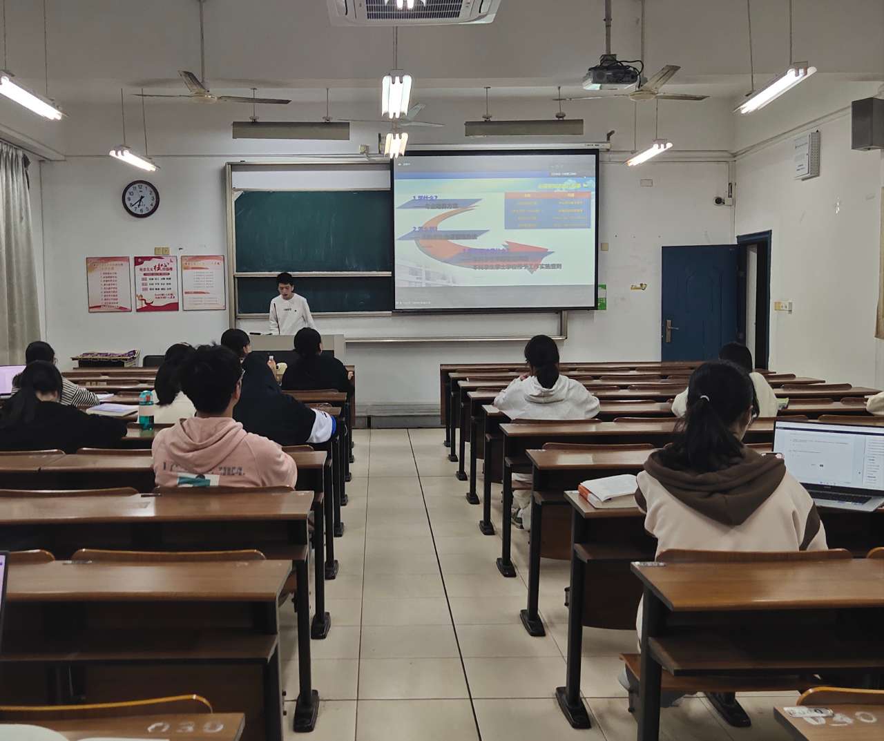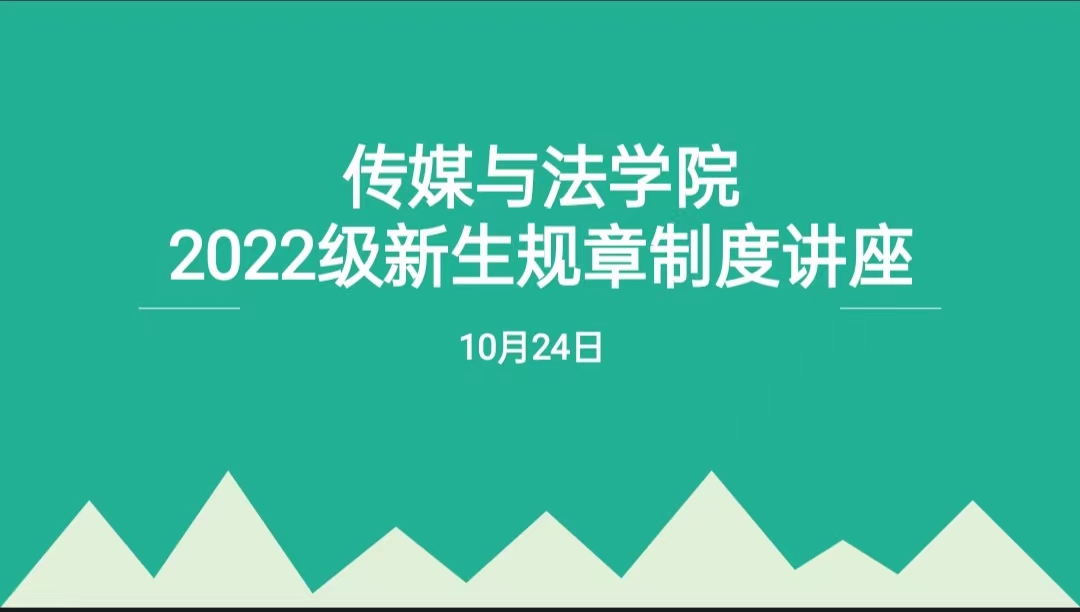 为做好新生始业教育,帮助新生更好地融入大学生活,进一步了解学校相关规章制度,10月24日晚18:30,传媒与法学院教务办周密老师,学工办吴鸯玲、曲昊杨老师为学院2022级新生们开展规章制度讲座。新生在各班晚自习教室进行线上学习观看。
