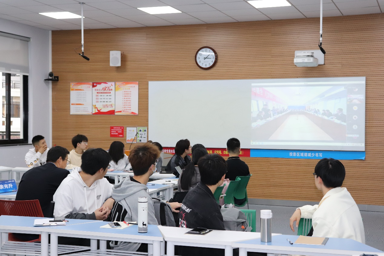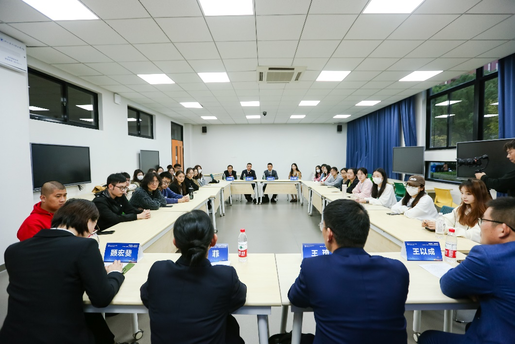 传媒与法学院党委副书记、纪委书记胡鹿鸣宣读第一期各10位法官、检察官和律师结对名单。传媒与法学院法学专业2020级学生在各个分会场认真观看了启动仪式直播。启动仪式结束后,导师们进入各分会场与法学专业2020级128位同学分组展开座谈。