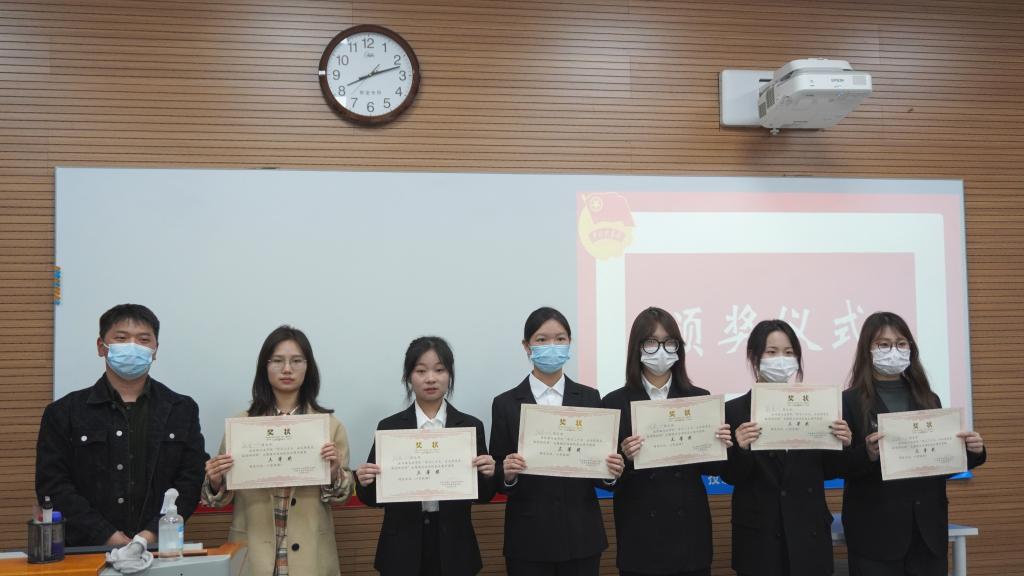 经过激烈角逐,法学213、法学211获一等奖,新闻223、网新222、法学222、法学214获二等奖,新闻211、网新213、网新224、新闻222、法学223、网新223获三等奖,新闻223获最具影响力奖,新闻211获最佳PPT制作奖。主持人公布评选结果,最后大家齐唱团歌为大赛画上了圆满的句号。