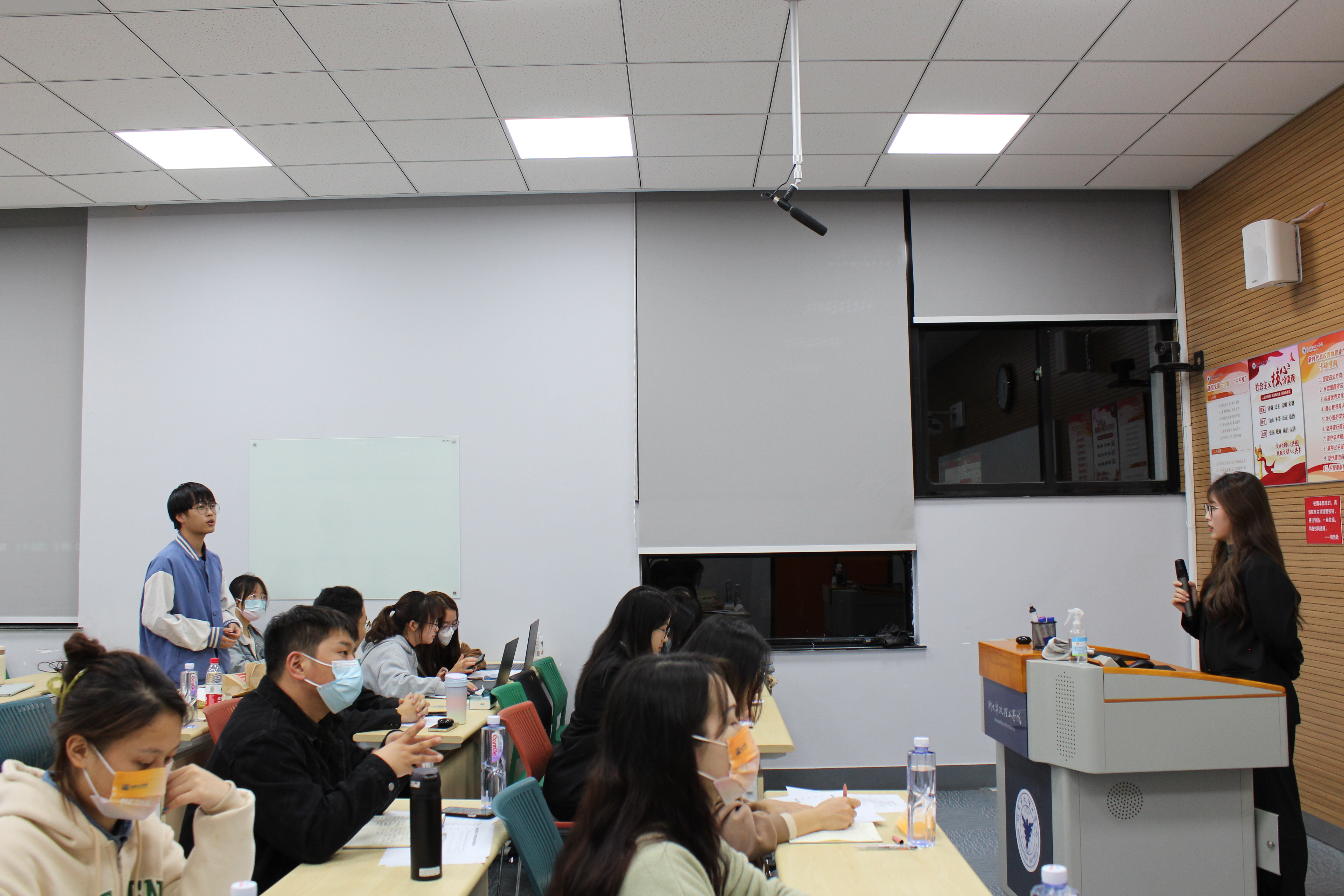 在大赛中,各班团支书以共同富裕、乡村振兴、民生问题、党的二十大为着眼点,展示活动ppt,汇报班级活动,如知识竞答、红色手工、“青年大学习”复刻、“以案论法”、党的二十大学习手帐、法治宣讲课、模拟职场面试等,充分展示了各班级对党的二十大的理解与感悟,同时各班团支书指出班级团日活动的不足,表达对今后团日活动的展望。在场同学积极提出问题,发表建议。各位评委点评了各班级团日活动的优点与不足,表达了观点与意见,并给予了一定的鼓励。
