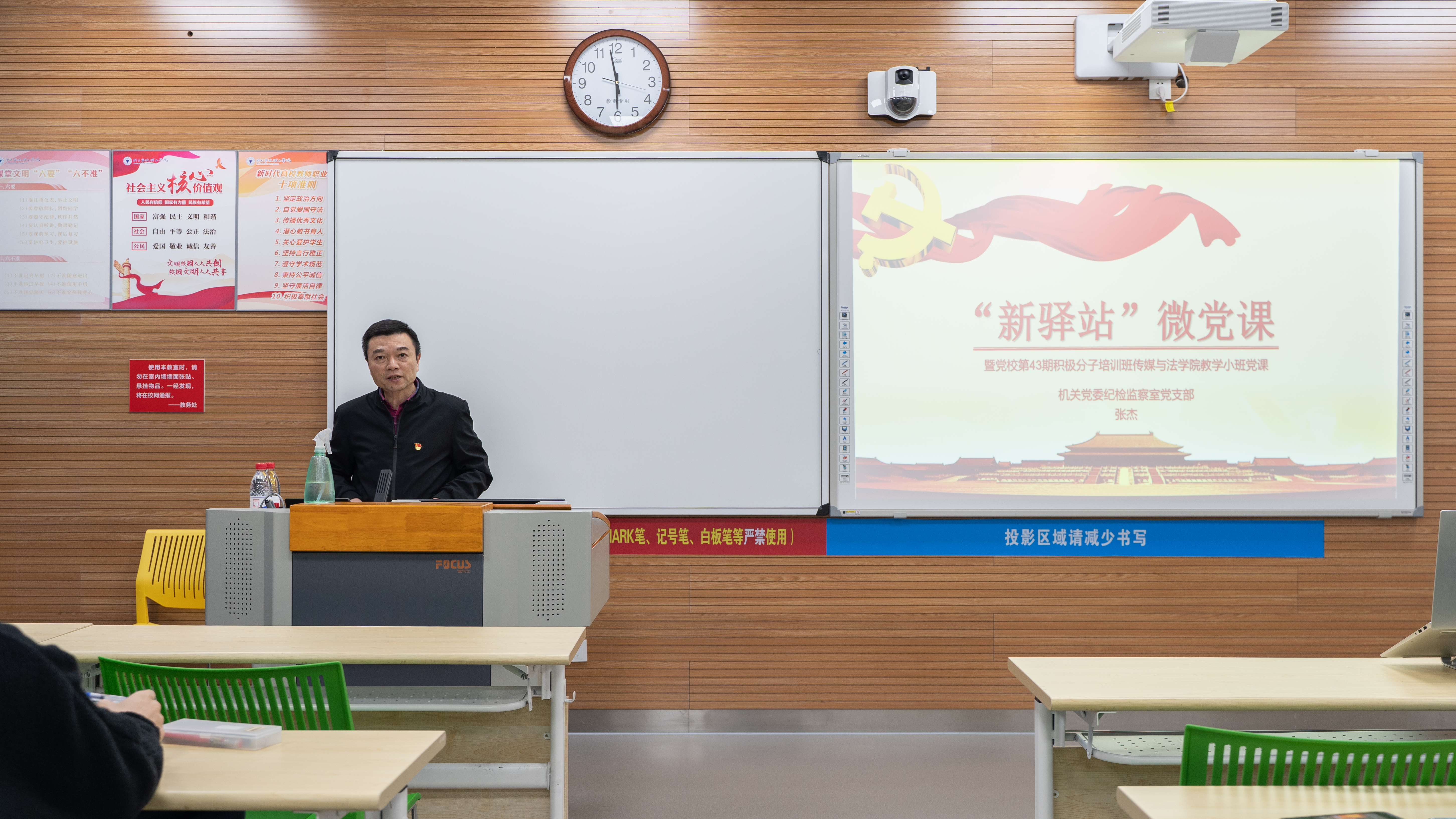11月15日晚18:00,机关党委纪检监察室党支部书记张杰在NB112教室讲授以“党的纪律建设及纪律要求”为主题的微党课,传媒与法学院第43期入党积极分子培训班学员、传媒与法学院各学生党支部纪检委员参加了此次微党课学习。