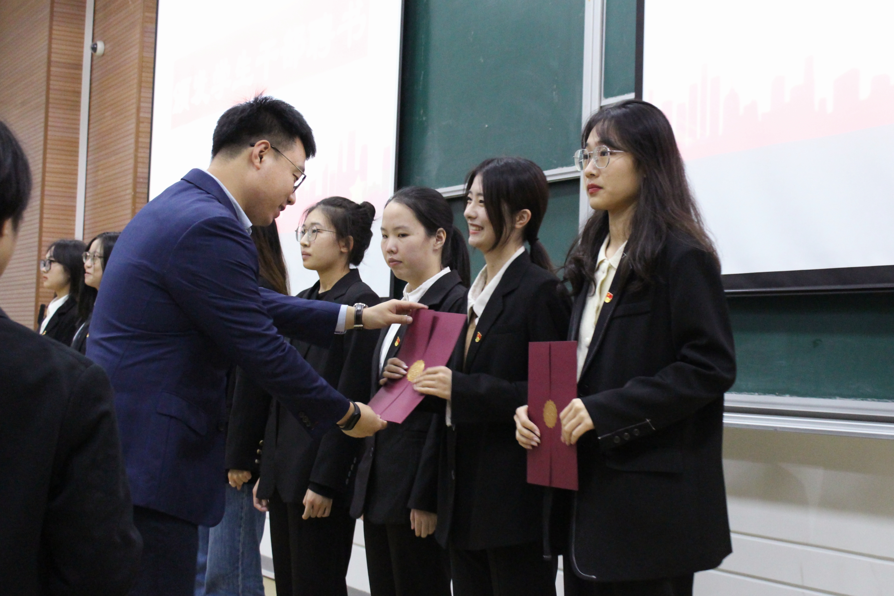 伴随着激昂的国歌声,此次大会正式拉开序幕。学院党委副书记、纪委书记胡鹿鸣宣读专职团干部任命文件,思政主管曲昊杨宣读红色青年党教中心干部任命文件,团委书记李倩倩宣读团学干部任命文件,随后各位老师为新任学生干部颁发聘书并合影留念。