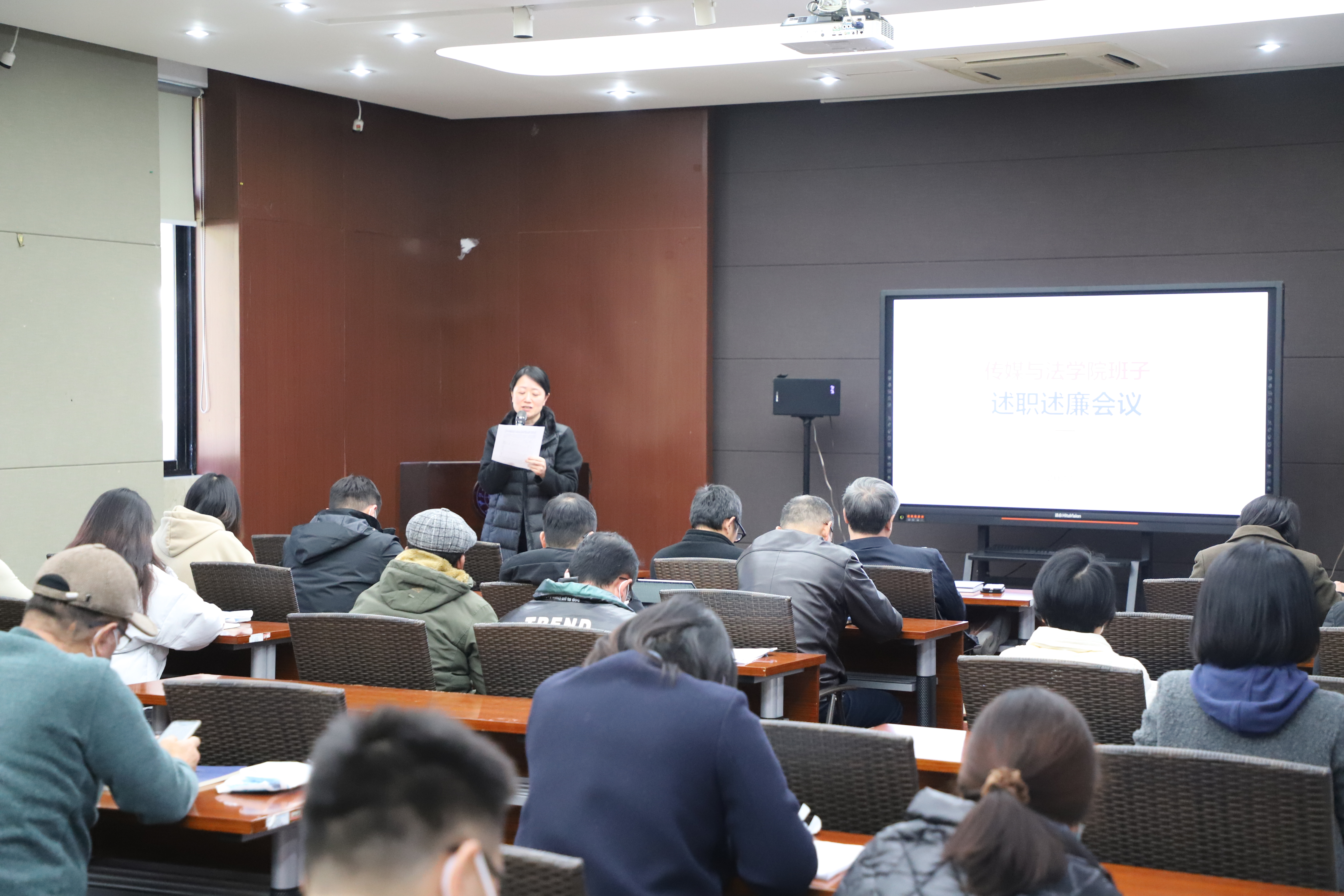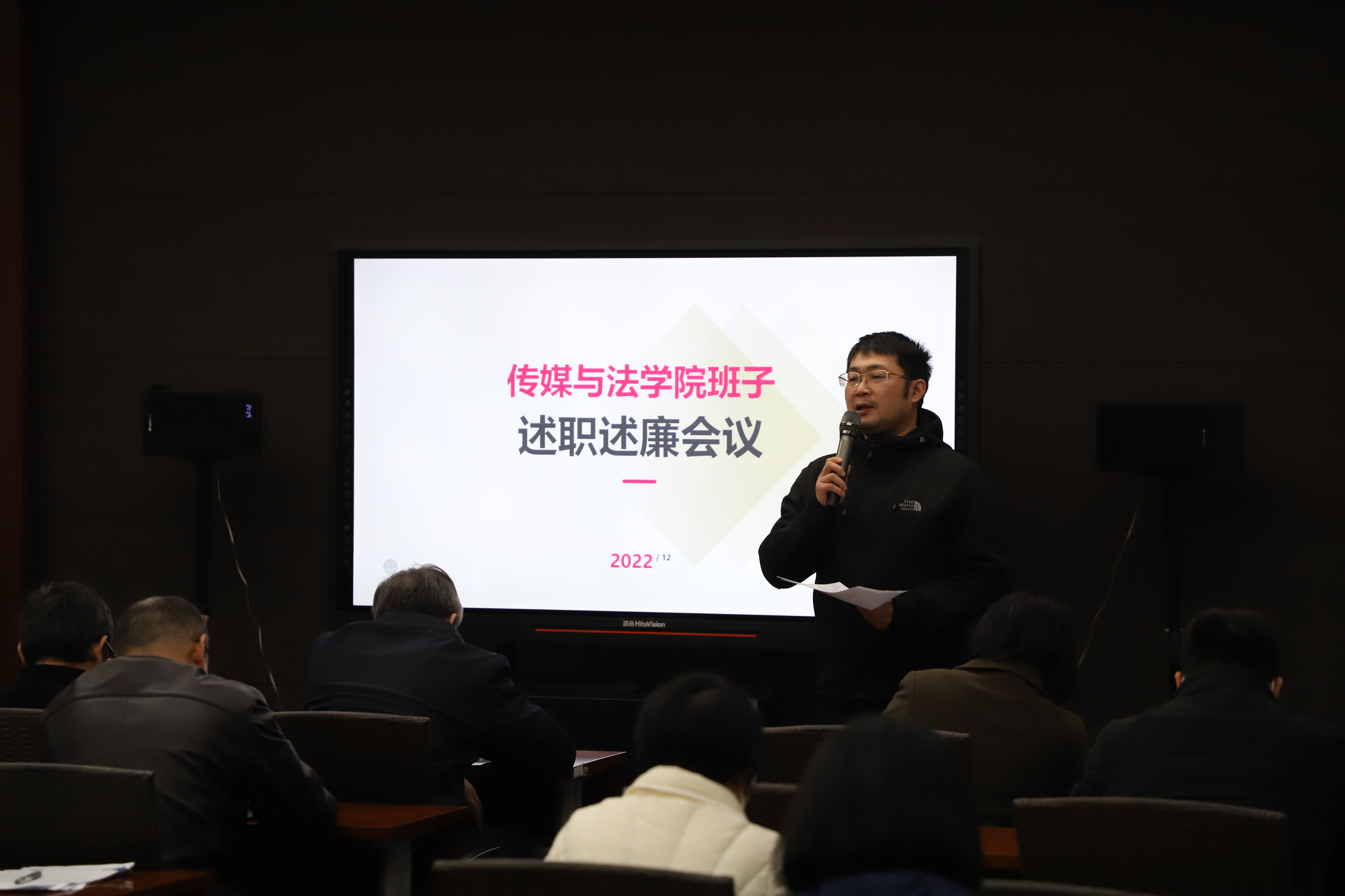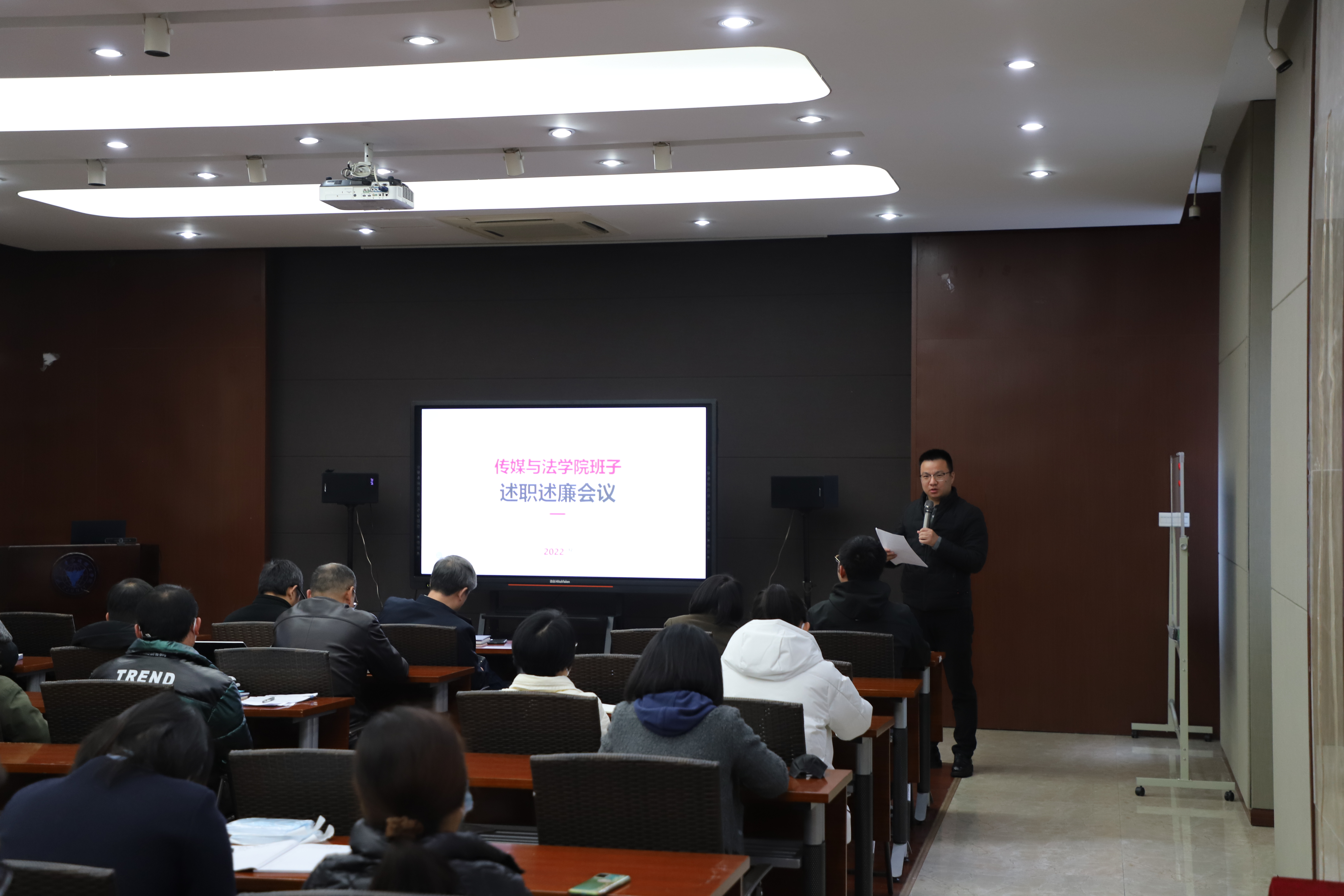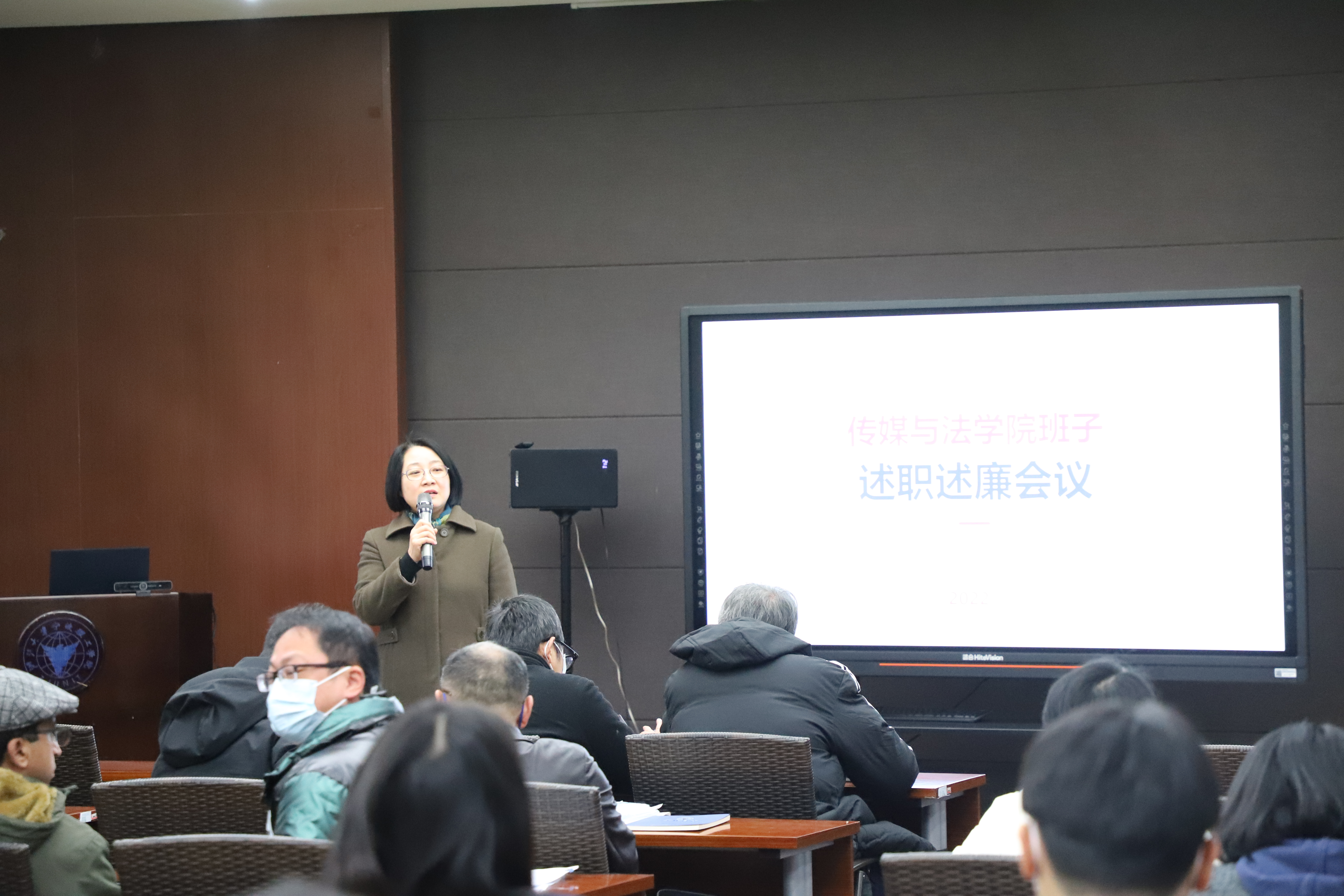 12月15日中午,传媒与法学院在SC101召开2022年度班子述职述廉会暨期末全体教职工会议。学校党委书记胡征宇出席会议,会议由学院党委书记朱小红主持,学院班子成员、全体教职工及学生代表参加。