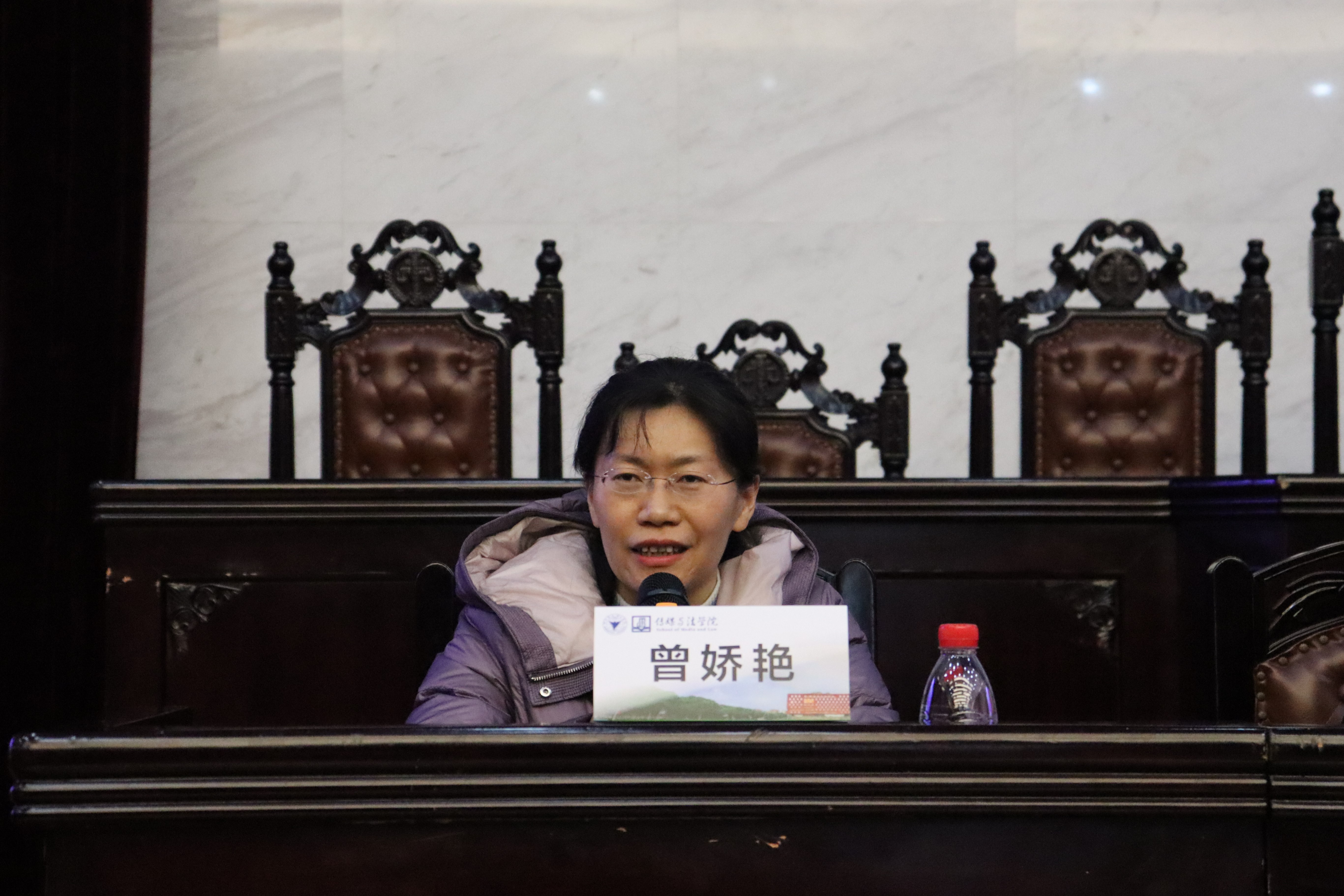 接过尹振国博士的话筒,曾娇艳博士娓娓道来了她的法学求学经历。她讲到自己并非法学科班出身,是后来对法学产生了浓厚的兴趣才投身其中的。对于法学的学习,她感受颇深,并希望同学们将自己所学的理论与实践相结合,能够成为一名真正意义上的合格法律人。