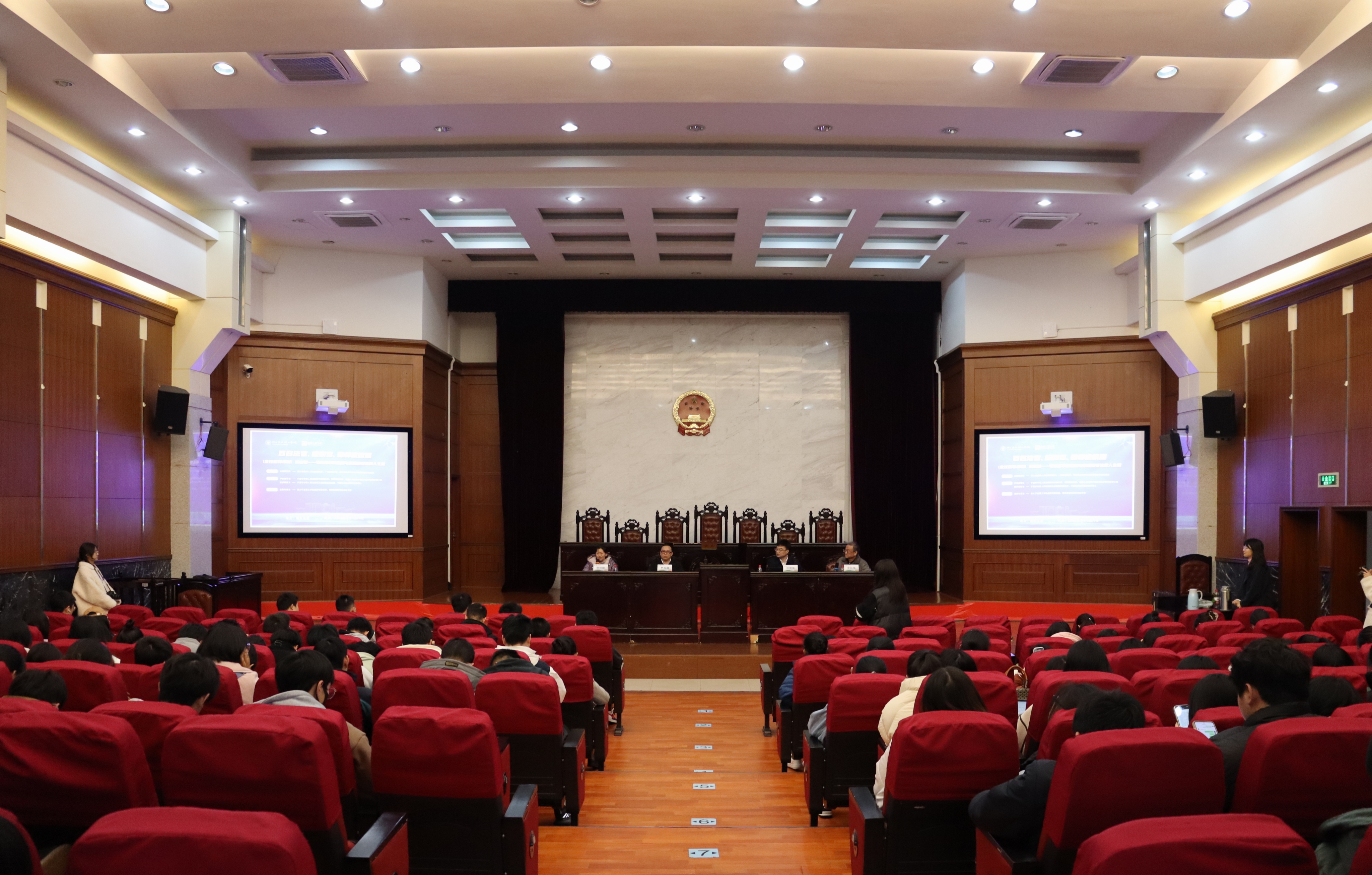 活动尾声,同学们踊跃提问,提出“成为法官所需最重要的品质什么”,“如何突破法律学习的瓶颈时期”等问题,徐建新院长、尹振国博士、曾娇艳博士对此作出了详细的回答。现场气氛高涨,掌声不断。本次活动也在热烈的掌声中落下帷幕。通过此次活动的学习,相信同学们能够更加坚定法律信仰,不忘初心,走好自己的法律人生路。