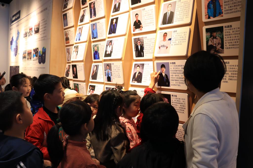 上午10点,小朋友们在大学生志愿者的引导下游览浙大宁波理工学院校园。“有谁想要成为一名气象学家?”,在竺可桢雕像前,孩子们纷纷举起自己的手。校史馆的参观过程中,大学生讲解员对学校的发展历程、荣誉成就、学科建设、杰出校友、创新作品等内容进行了详细介绍,孩子们听得津津有味。
