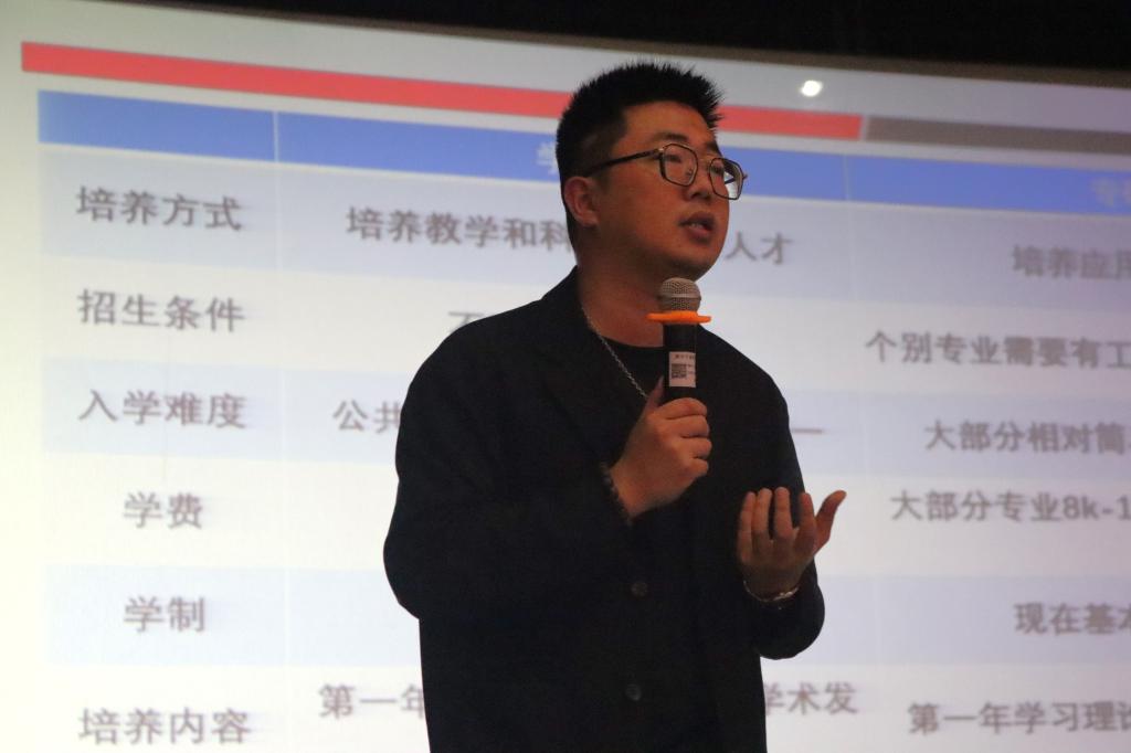 为进一步加强学风建设,使广大学子更加深入了解本专业升学、就业前景,助力他们对未来有更加明晰的规划。4月25日,传媒与法学院考研、出国专题讲座在可珍讲堂顺利召开,讲座由我院思政副主管奚捷捷主持,考研留学专家闻凯峰、张紫雨老师担任主讲,传媒与法学院2022级全体学生参加。
