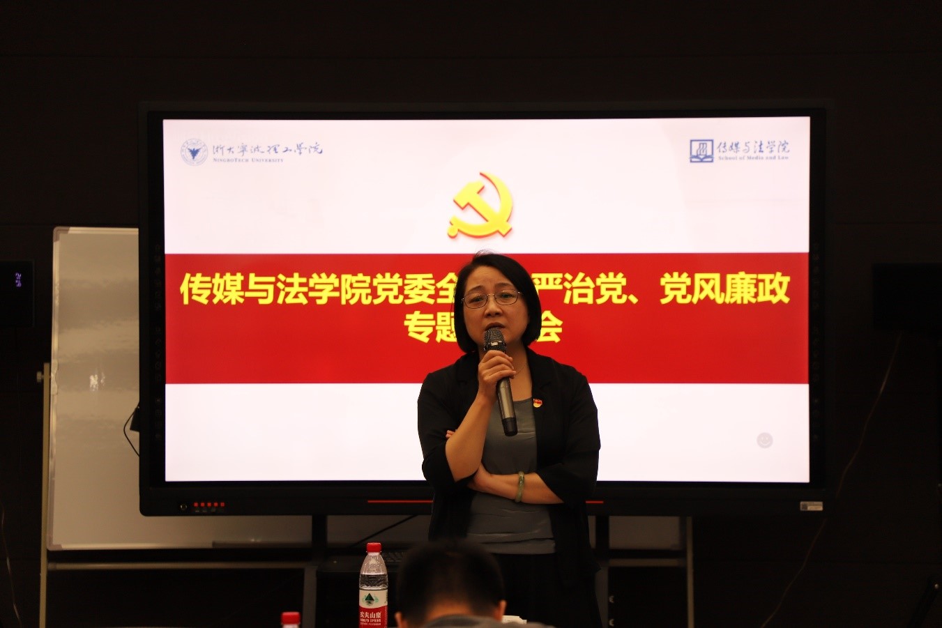 7月5日,传媒与法学院党委在SC101召开全面从严治党、党风廉政建设专题分析会。会议由学院党委书记朱小红主持,学院全体领导班子成员、党委委员、纪委委员、党支部书记、副(主管)、系所负责人参加。朱小红领学了《习近平著作选读》(第二卷)关于全面从严治党探索出依靠党的自我革命跳出历史周期率的成功路径的相关内容,强调要提高政治站位,勇于自我革命,营造风清气正的学院环境,永葆共产党人政治本色。