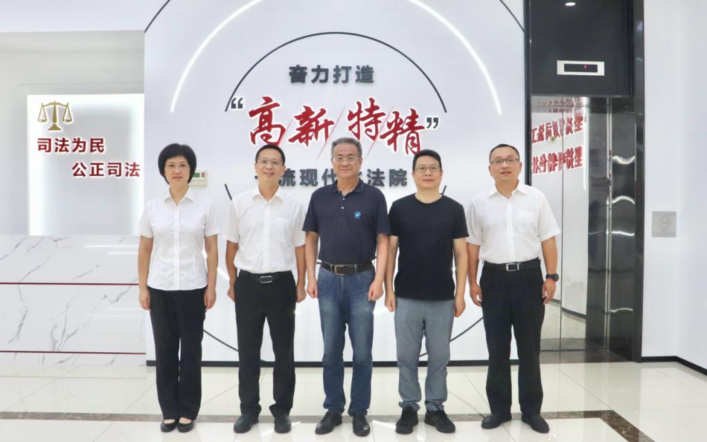 为不断提升我校法治人才培养能力,8月3日,浙大宁波理工学院启新特聘教授金彭年前往宁波高新技术产业开发区人民法院(后简称高新区法院)走访交流。高新区法院院长郑重,政治处主任檀丹霞,执行局长李佳等热情接待,并开展参观交流活动。