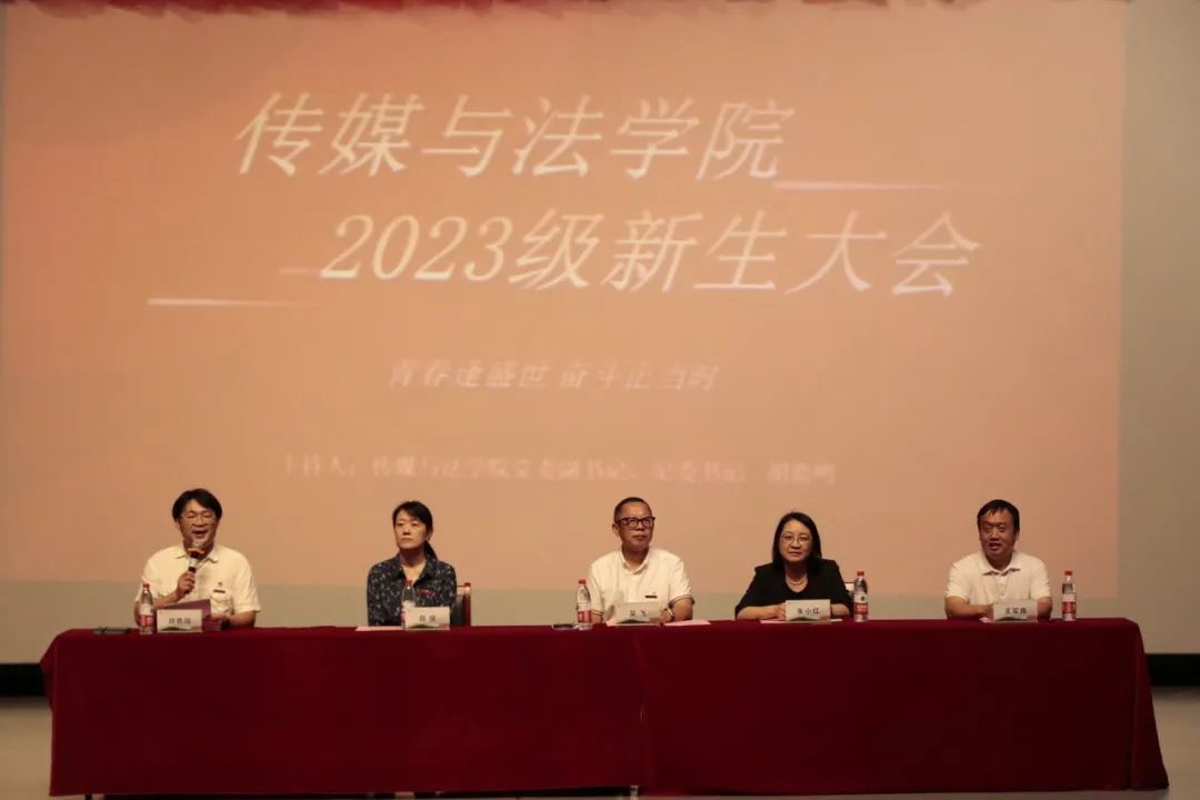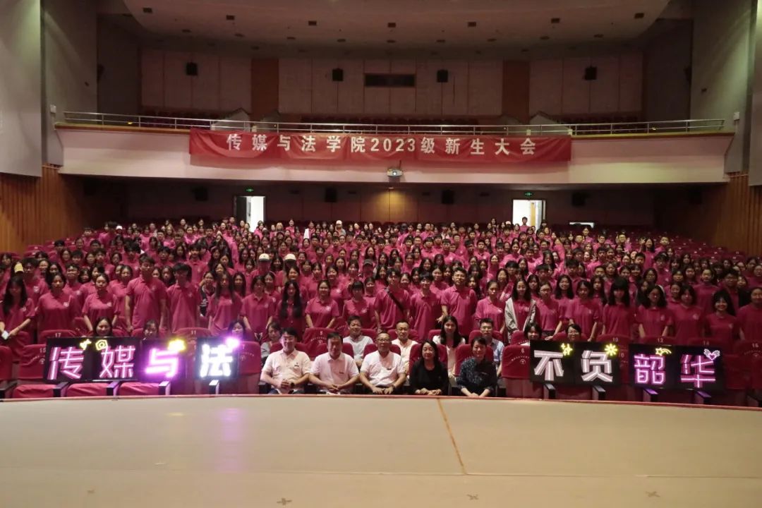 9月27日晚,传媒与法学院2023级新生大会在可珍讲堂隆重举行。传媒与法学院院长吴飞、学院党委书记朱小红、学院副院长韩缨、学院副院长王军伟出席大会。学院新生班导师、各系、研究所负责人、各部门教职工代表、班导师助理、老生代表以及全体2023级新生参加大会。大会由传媒与法学院党委副书记、纪委书记胡鹿鸣主持。