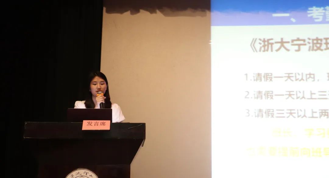 会上,学院思政主管曲昊杨、学工办吴鸯玲老师为新生作规章制度讲座,普及校纪校规知识,促进新生养成良好的学习生活习惯,为他们今后的大学生活打下坚实的基础。