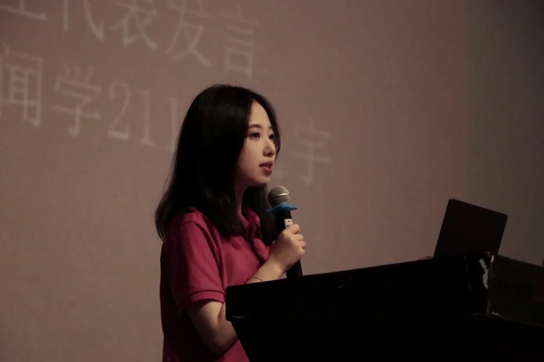 传媒与法学院团委副书记(学生)、新闻231班导师助理、新闻211班的施晓宇代表老生发言。她从三个方面鼓励新生找准方向,更快地适应大学生活。做好合理规划,确定奋斗目标;培养兴趣技能,助力全面发展;学好专业知识,积极动手实践。她勉励新生们在奋斗中释放青春激情,追逐青春梦想,成为更好的自己。