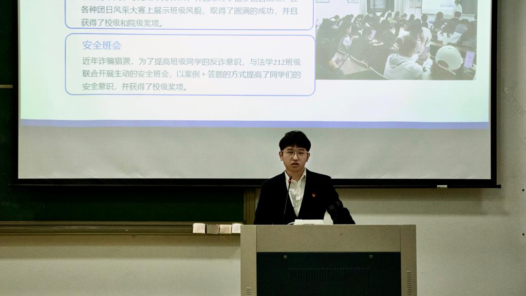 答辩过程中,15位班级负责人从班级建设、日常纪律、获奖情况、特色活动等方面出发,展现勤奋好学、积极进取的班级风采,同时指出班级的不足之处,点明未来工作计划,期待在接下来的学年中有更加出彩的表现。其中,网新214班注重学习与实践结合,积极参与暑期社会实践和实习工作,他们重视实践,更重视实践对学习的启示;法学211班专业成绩优异,专业年级前十共有五人,他们互帮互助、齐心向学的学习风气给现场评委留下了深刻的印象;新闻212班主要通过特色公众号的制作来加强班级凝聚力,与此同时,班级同学发挥专业特长,共同制作报纸《隐力》,在学院宣传栏展出,透露着班级的温度。每个班级都在有限的时间内全面展现出班级特点,在学业成绩、专业实践等方面为同学们起到了良好的带头作用。