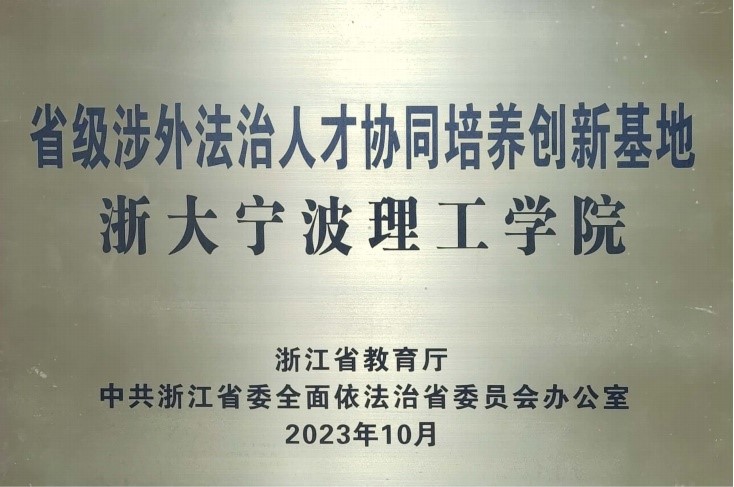 根据《浙江省教育厅 中共浙江省委全面依法治省委员会办公室关于公布首批省级涉外法治人才协同培养创新基地建设试点名单的通知》(浙教厅函〔2023〕162号文件),浙江大学、浙江师范大学、宁波大学、浙江理工大学、浙江工商大学、浙江农林大学、浙江财经大学、浙江外国语学院、杭州师范大学、温州大学、绍兴文理学院、湖州师范学院、浙江警察学院、浙大宁波理工学院共14所院校入选。省司法厅副厅长徐晓波和省教育厅法规处陈红处长等领导为上述院校颁发了“省级涉外法治人才协同培养创新基地”的牌匾。