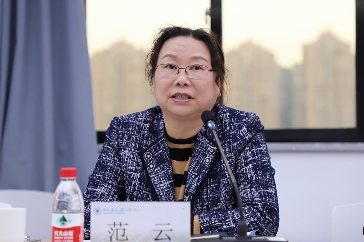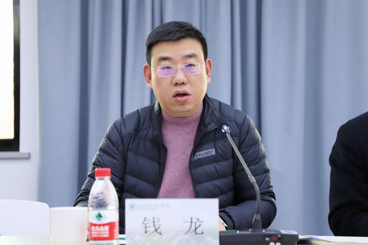 在汇报发言环节,传法学院法律系主任董玉鹏从学科建设目标、主要研究领域、现有团队构成、近五年成果产出和服务情况、未来发展设想等方面进行了科学创新与知识产权学科建设情况的汇报发言。传法学院副教授卢剑峰介绍了宁波市法治化营商环境研究基地(研究院)的成立过程、四大任务、在研项目与成果、未来教学研究任务与聚焦重点。