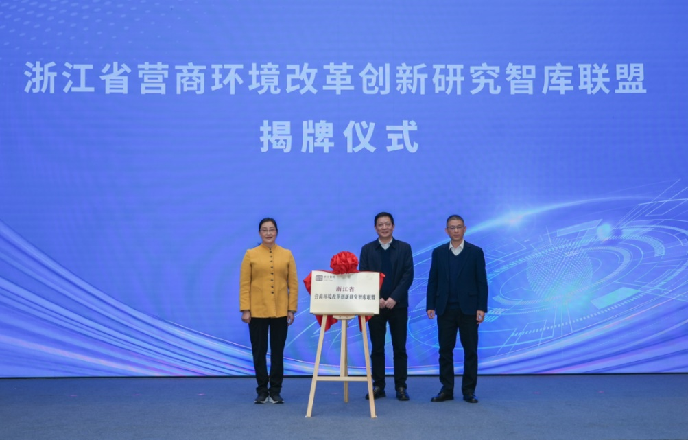 联盟成立仪式由省社科院党委副书记、院长查志强主持,省社科院党委书记王四清,省委改革办副主任雷朝林,省社科联党组成员、秘书长、二级巡视员刘东共同为浙江省营商环境改革创新研究智库联盟揭牌,并为智库联盟成员单位授牌。